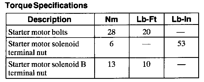 Torque Specifications: