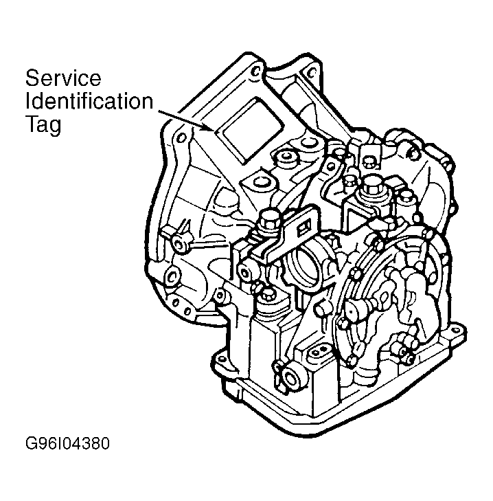 Transaxle is identified by an "E" designation under TR space, on the service identification tag. See Fig 1 . Label is attached to driver-side door jamb, below the latch striker. Assembly and serial number information is on service identification tag attached to transaxle. See Fig 2 .