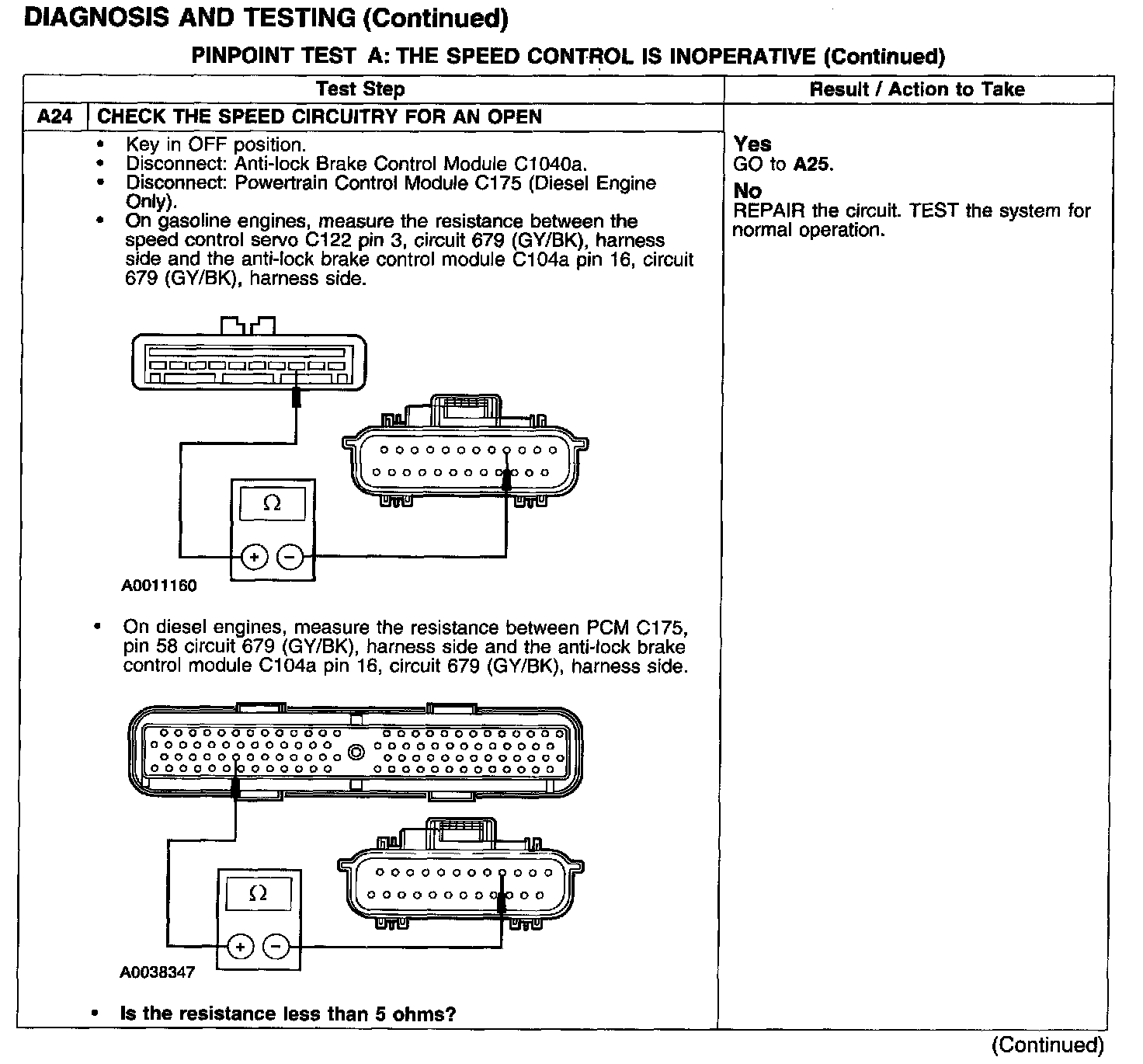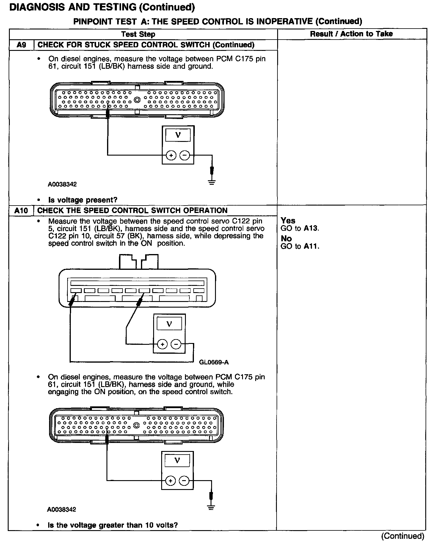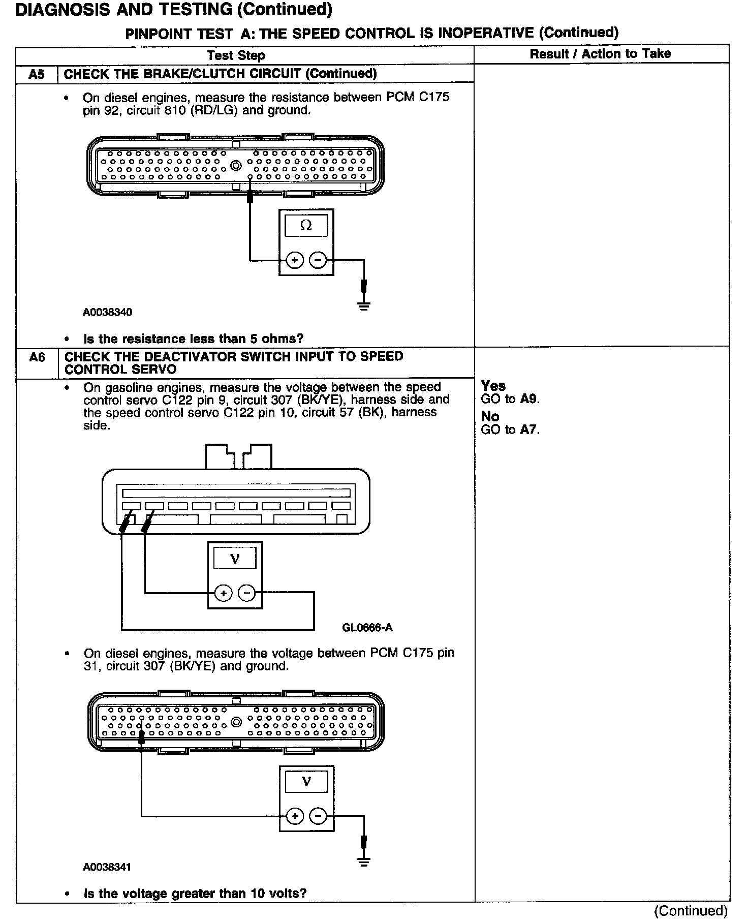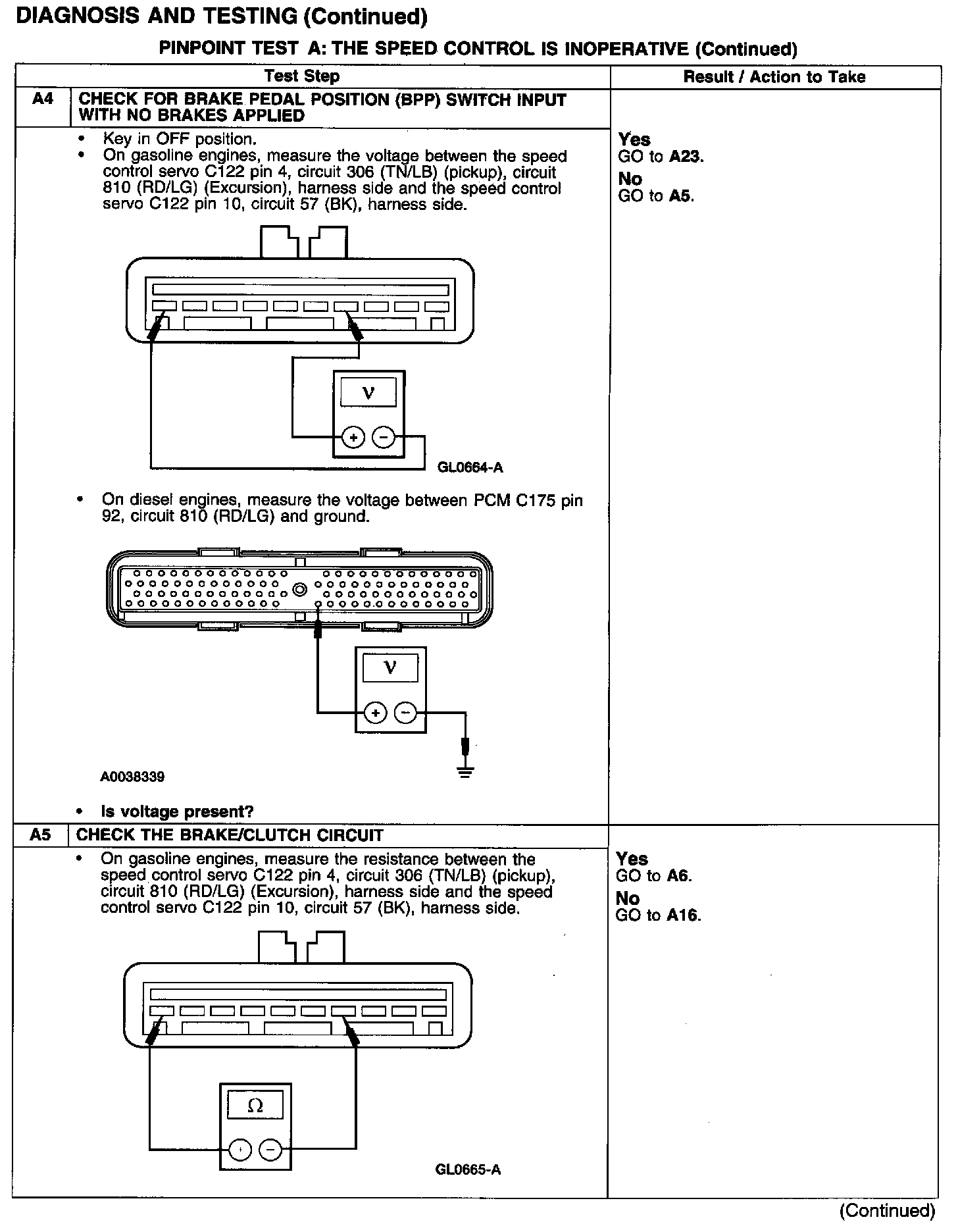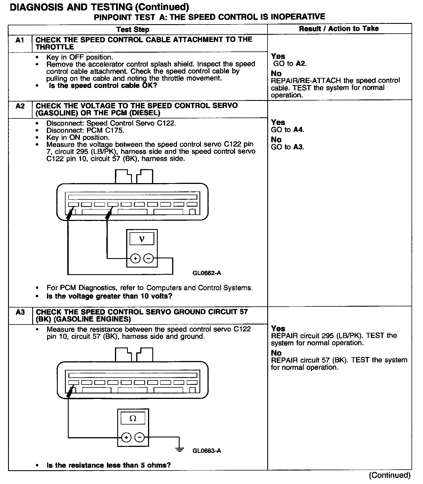 PINPOINT TEST A: THE SPEED CONTROL IS INOPERATIVETest A1-A3: