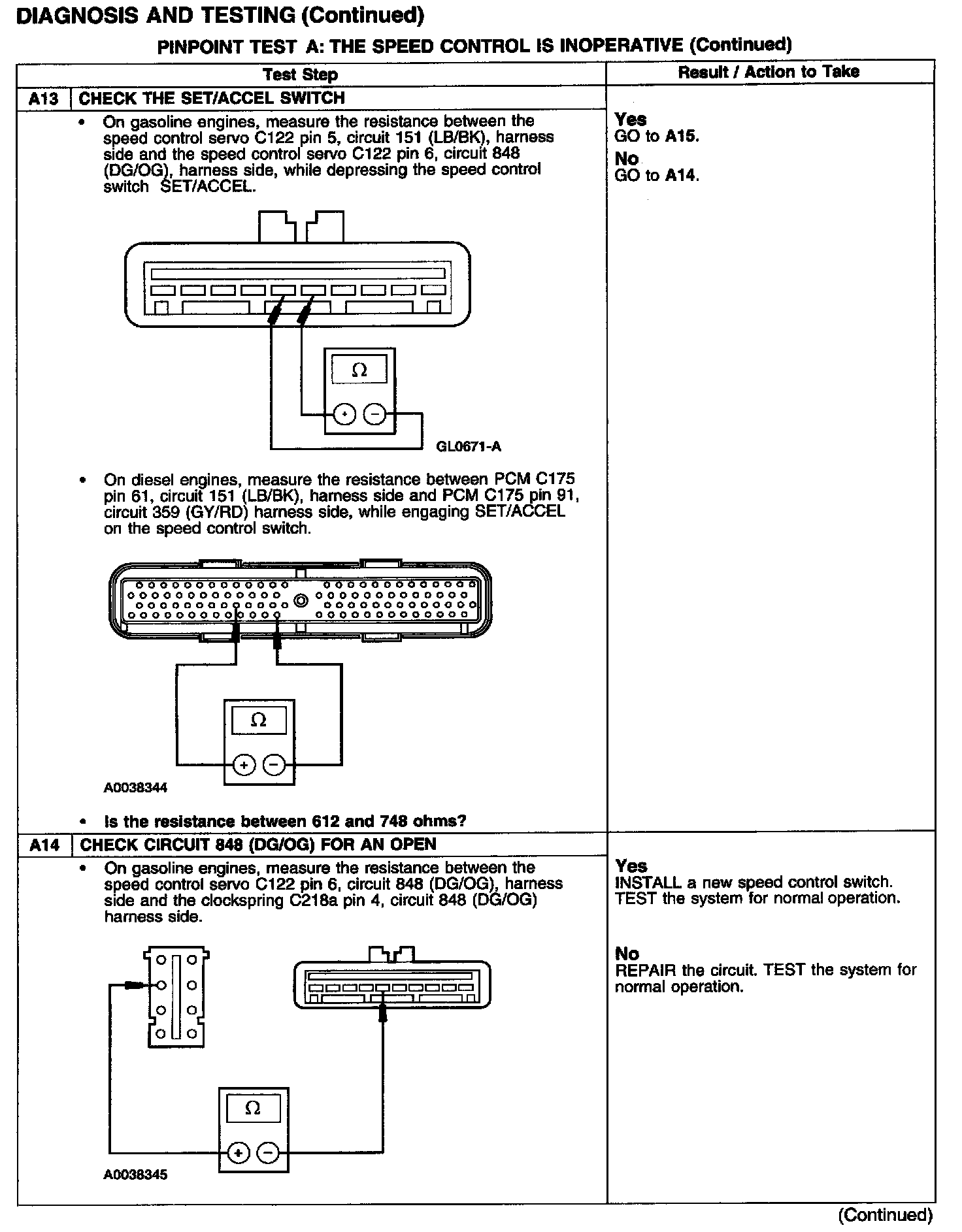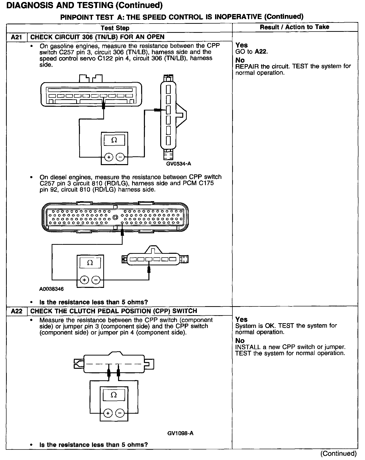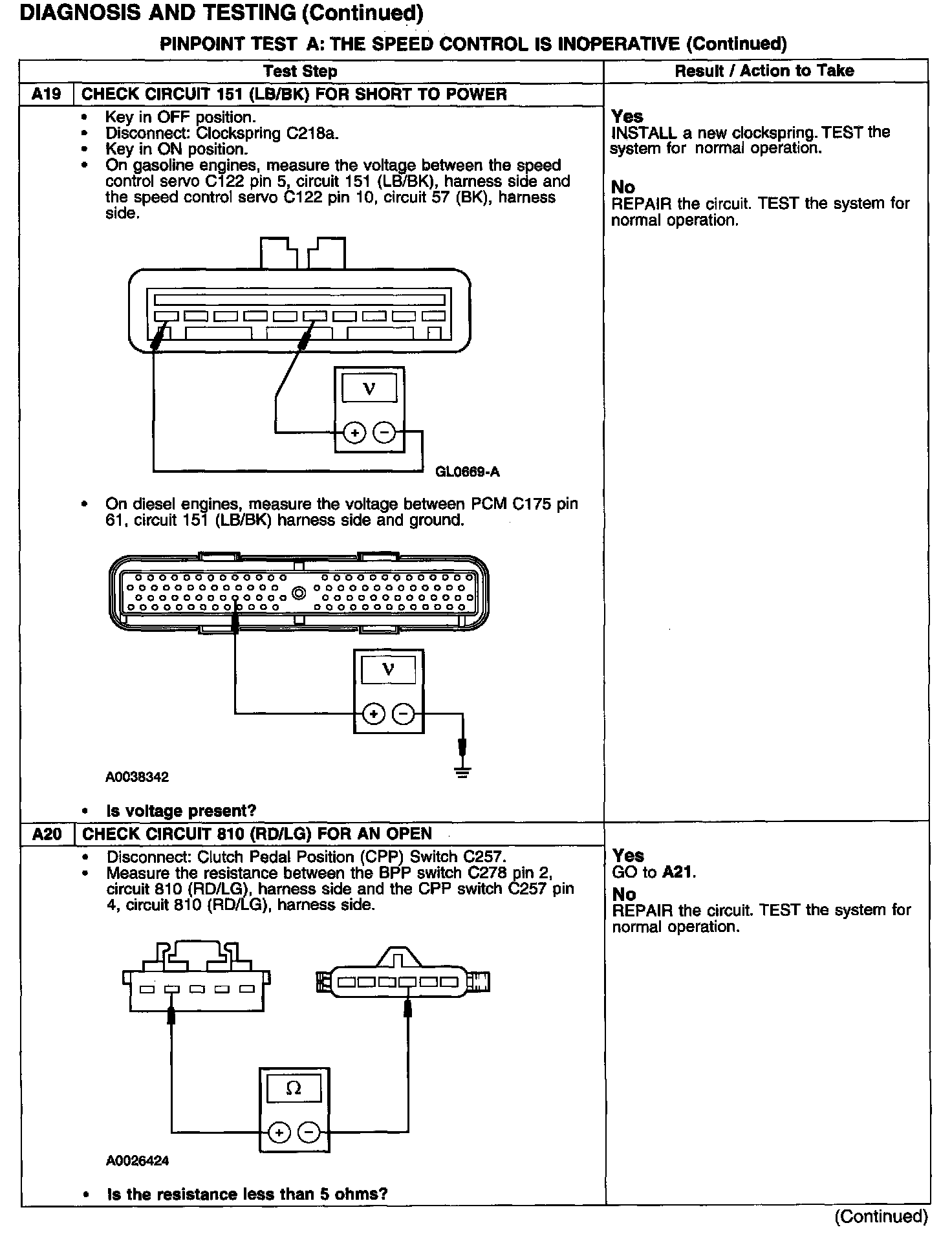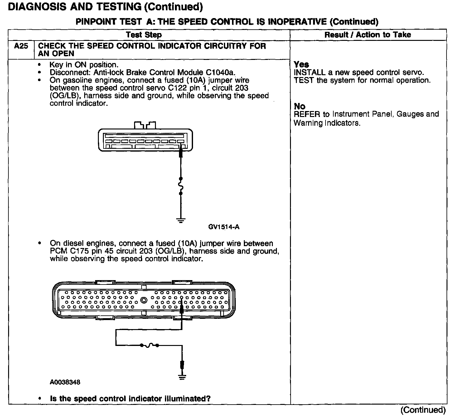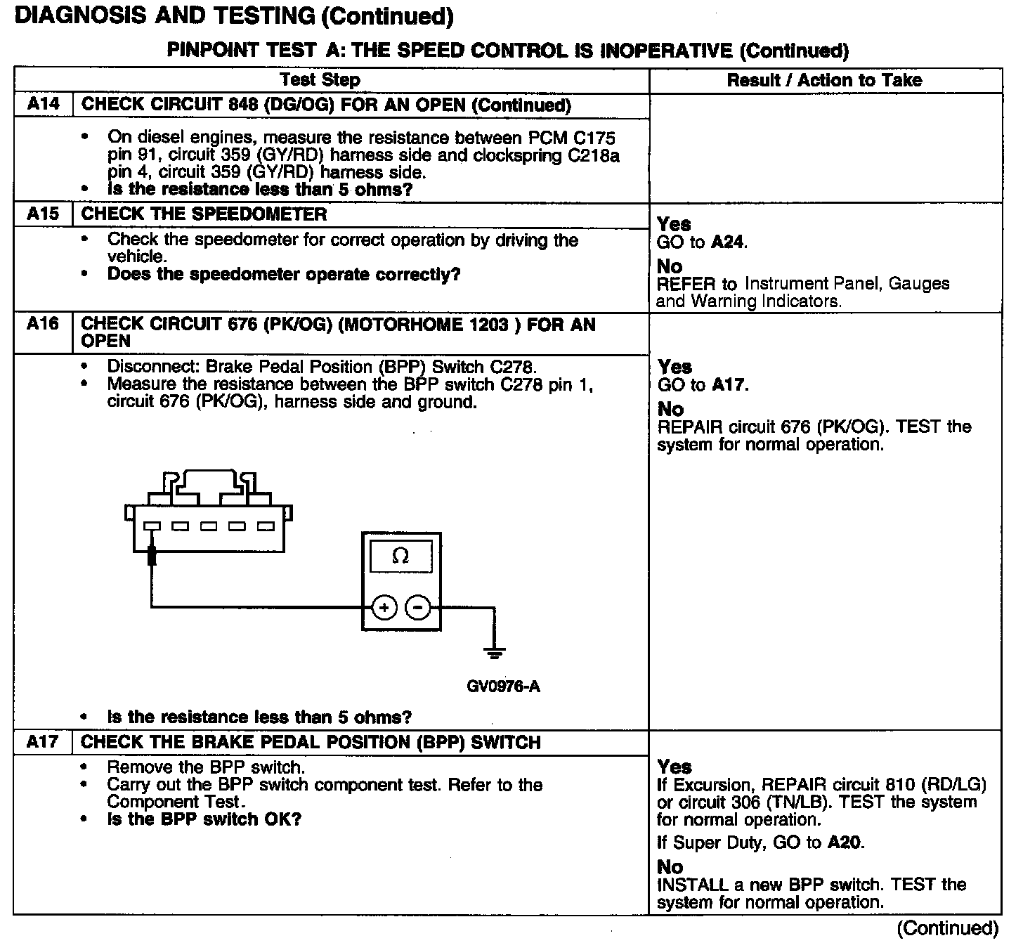 PINPOINT TEST A: THE SPEED CONTROL IS INOPERATIVETest A1-A3: