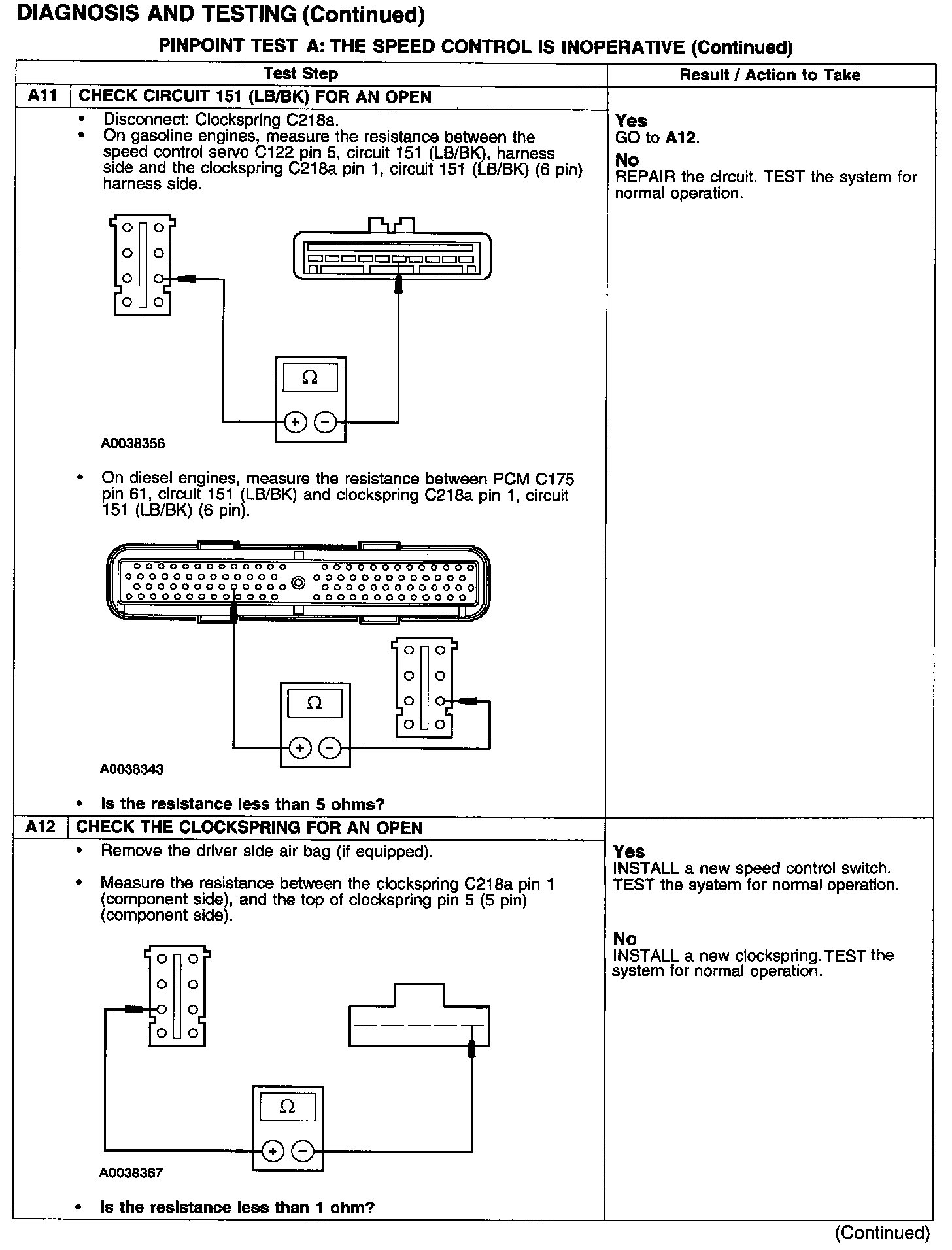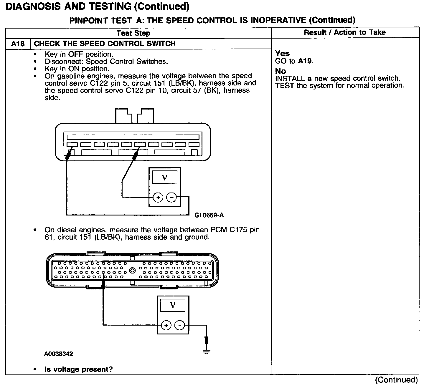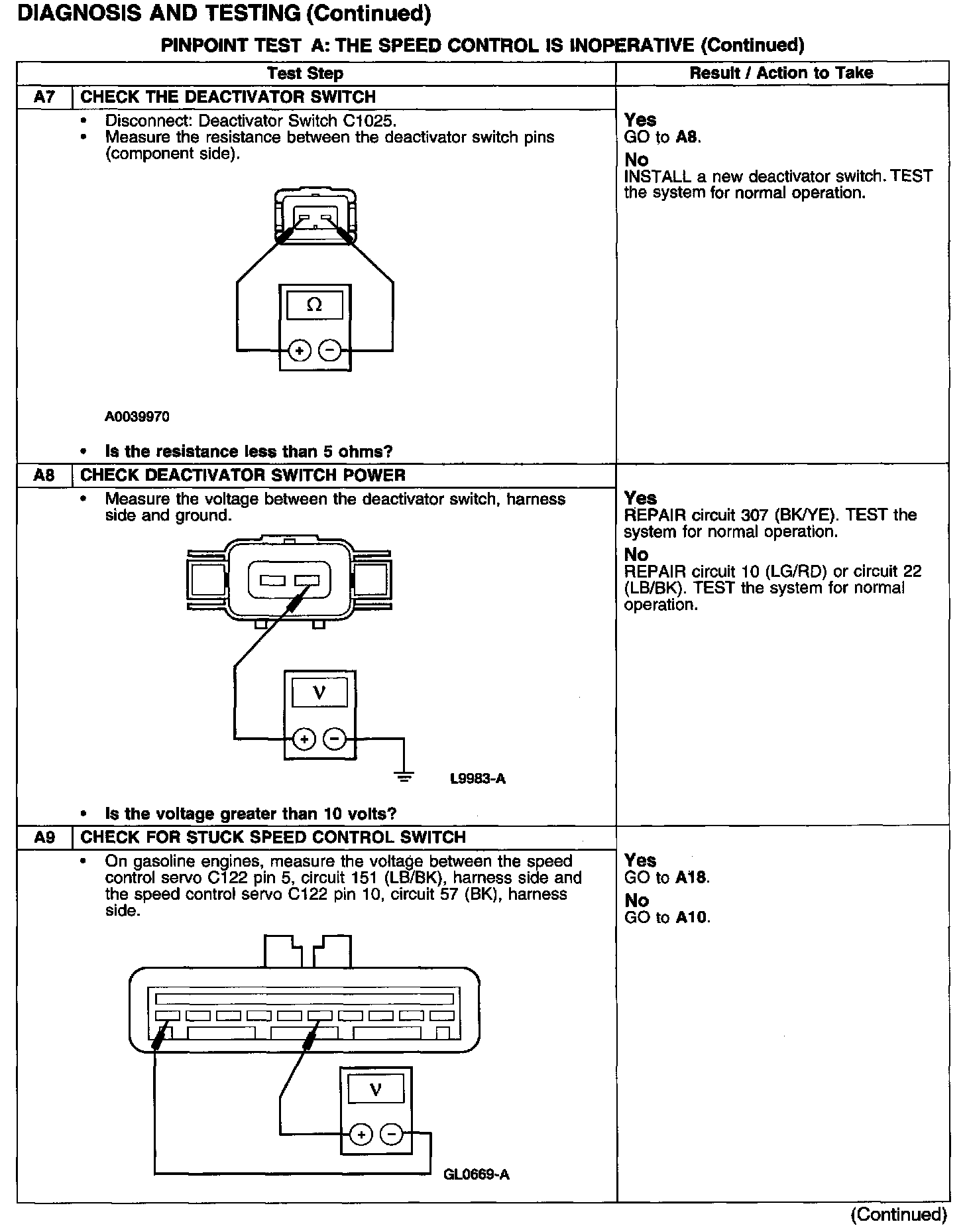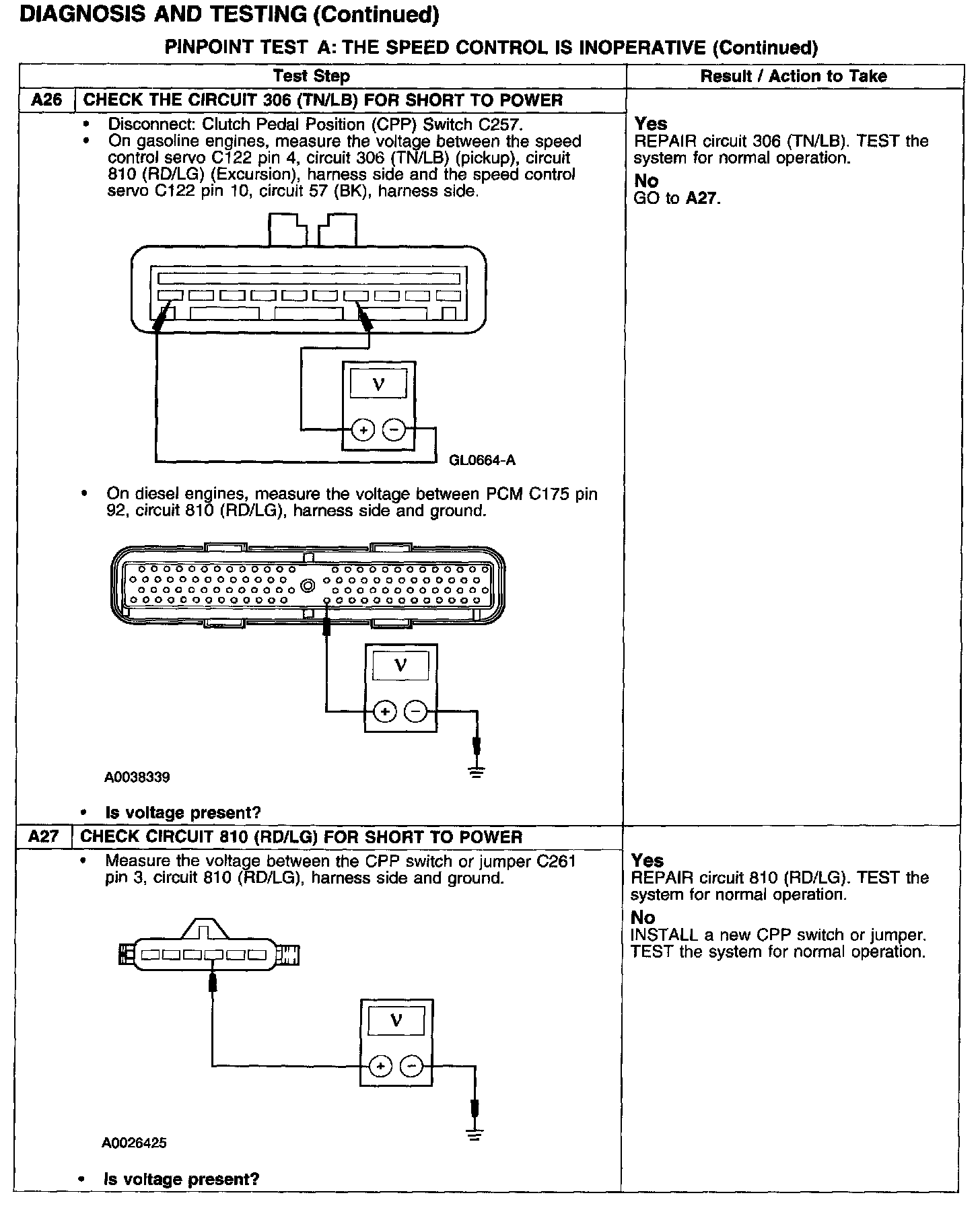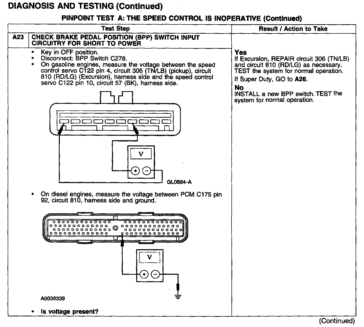 PINPOINT TEST A: THE SPEED CONTROL IS INOPERATIVETest A1-A3: