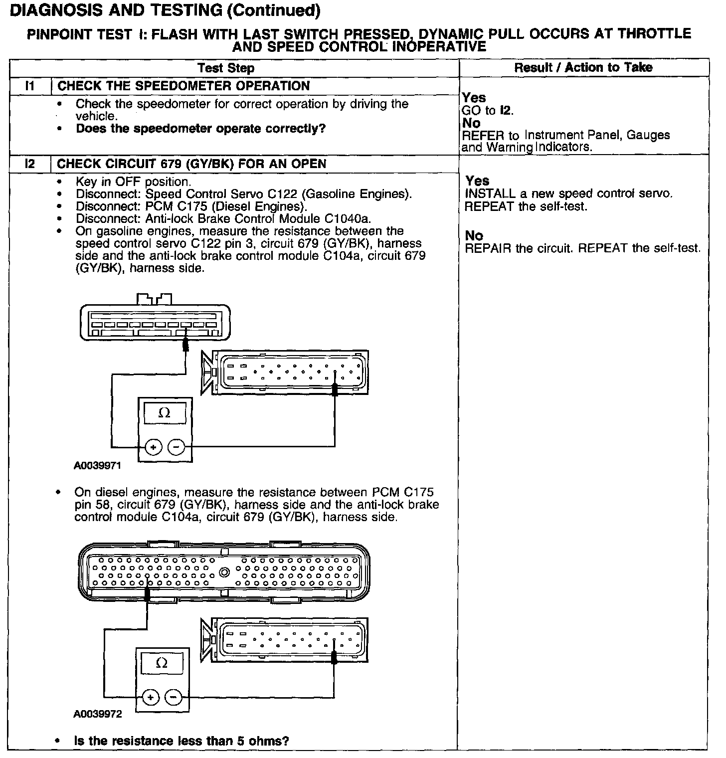 PINPOINT TEST I: FLASH WITH LAST SWITCH PRESSED, DYNAMIC PULL OCCURS AT THROTTLE AND SPEED CONTROL INOPERATIVE