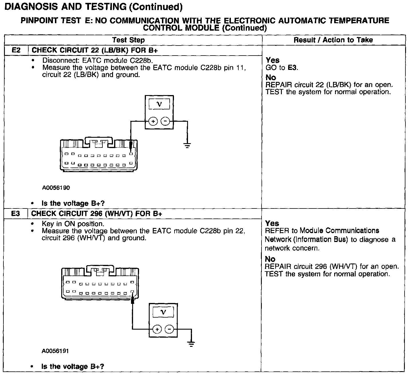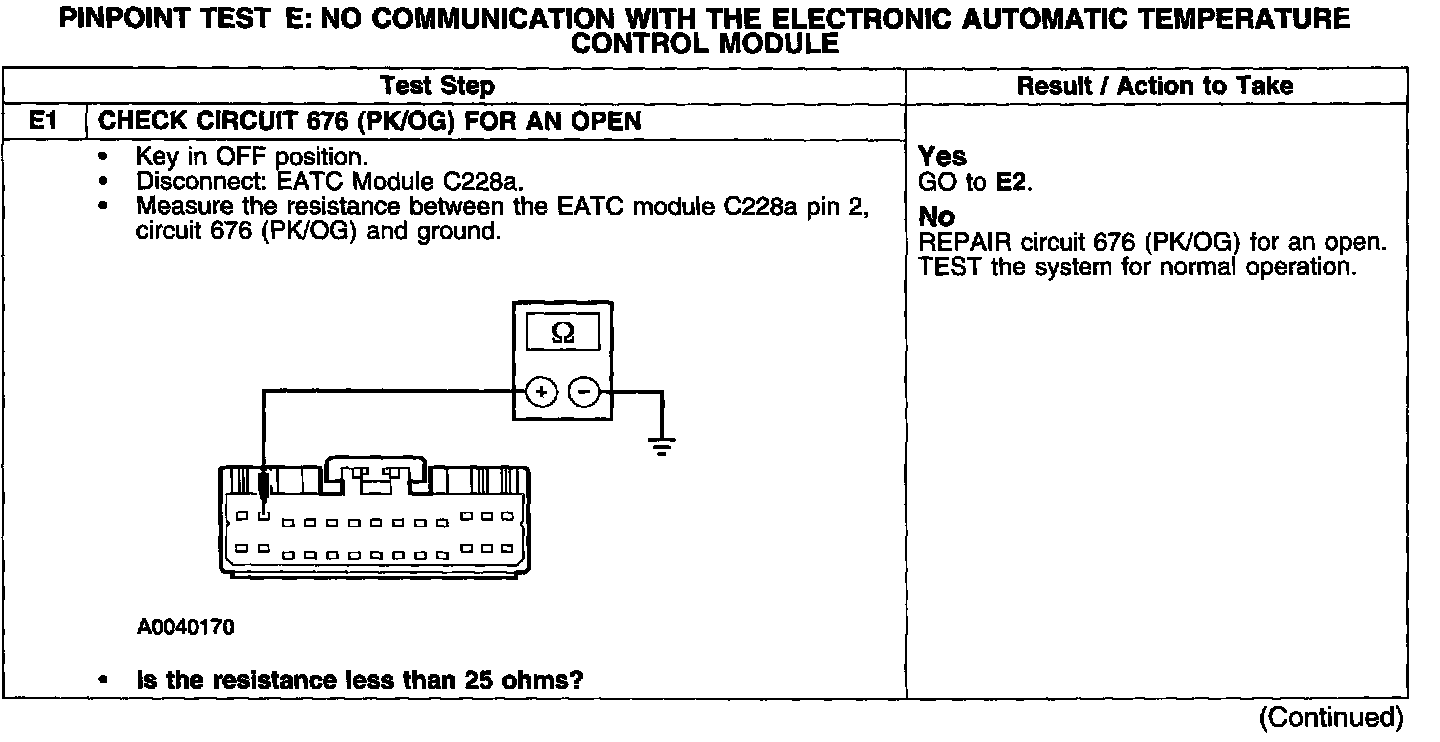PINPOINT TEST E: NO COMMUNICATION WITH THE ELECTRONIC AUTOMATIC TEMPERATURE CONTROL MODULE