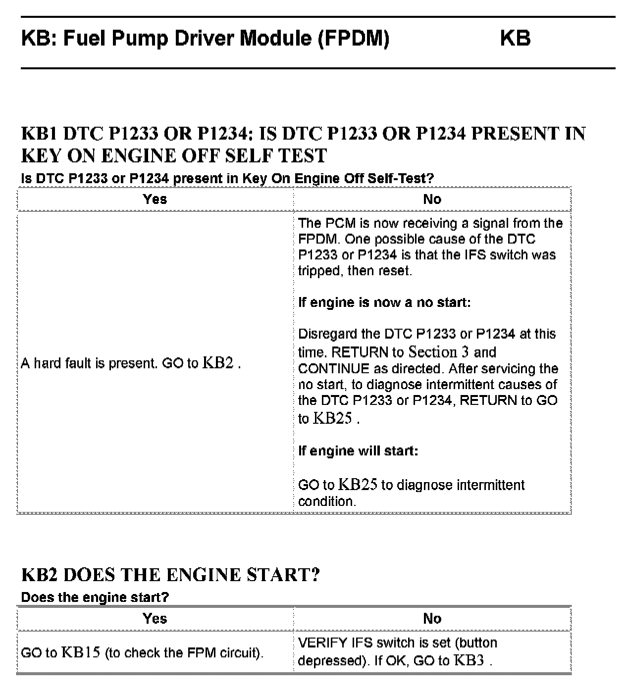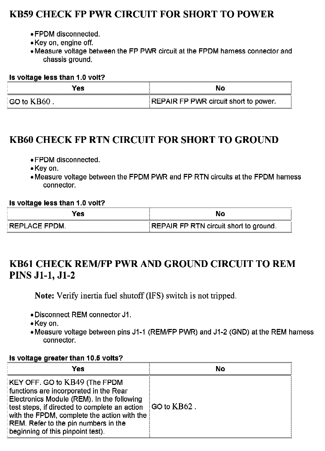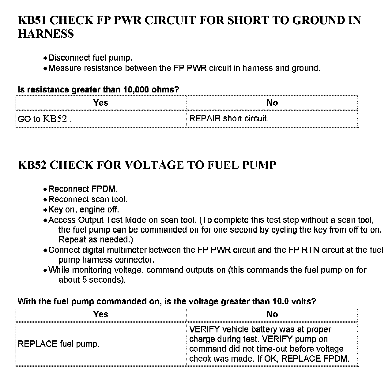 Tests KB: Fuel Pump Driver Module (FPDM)