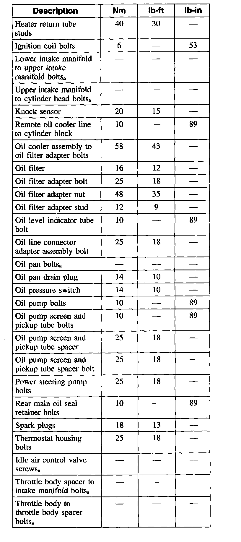 Torque Specifications