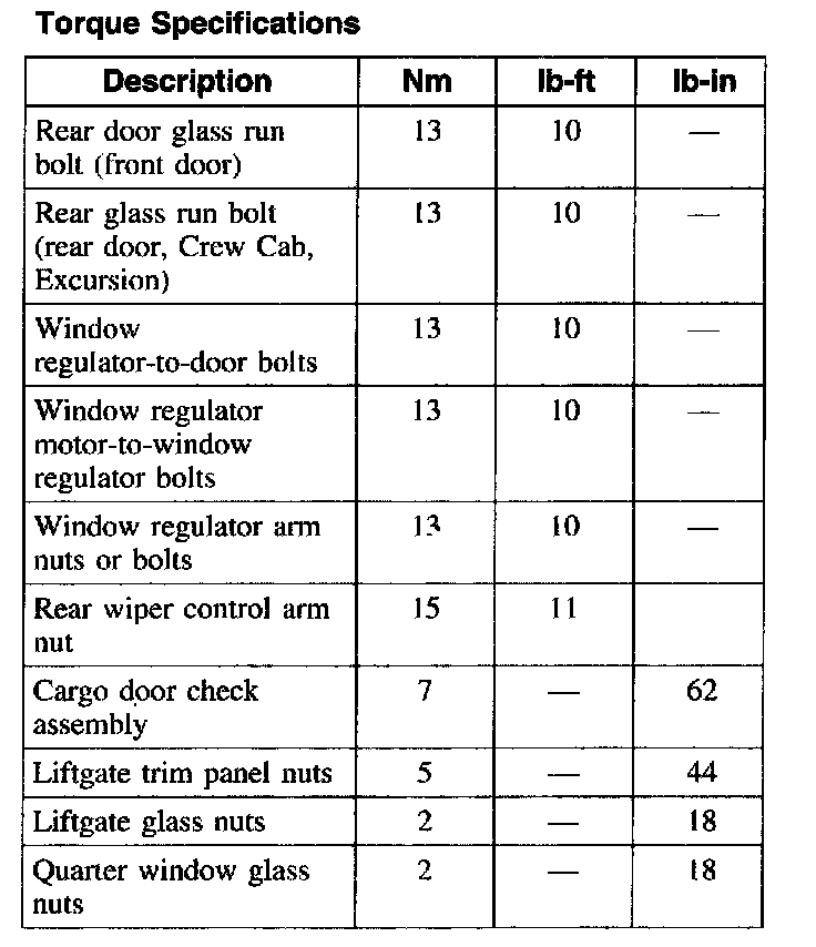 WINDOWS - Torque Specifications: