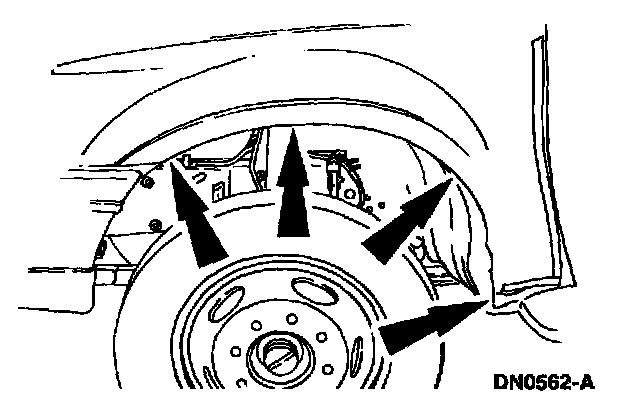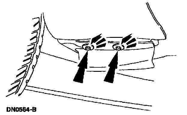 7. Remove the bolts securing the lower rear of the front fender.