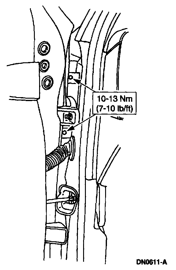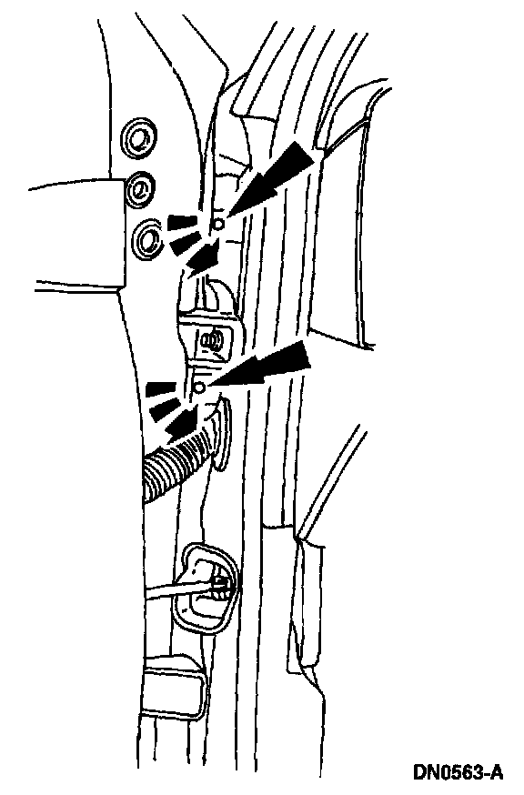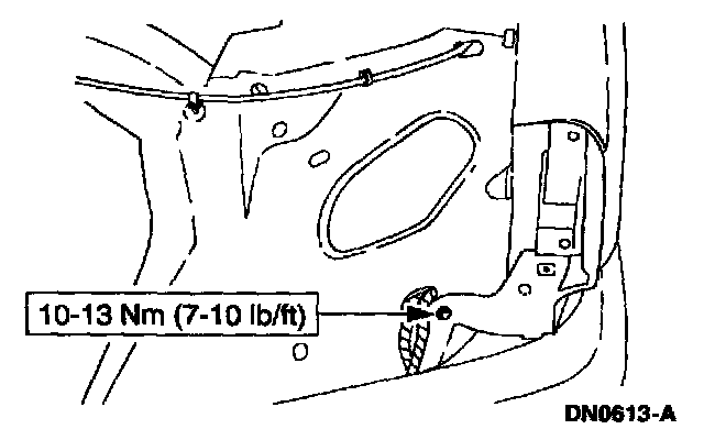 10. Open the door, then remove the fender retaining bolts.