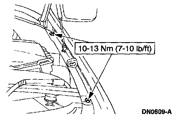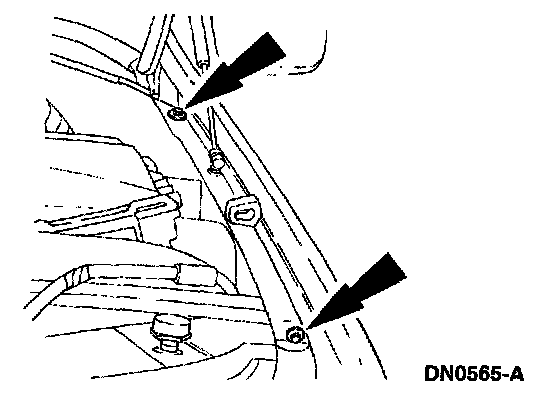 8. Remove the fender-to-radiator grille opening support retaining bolts.