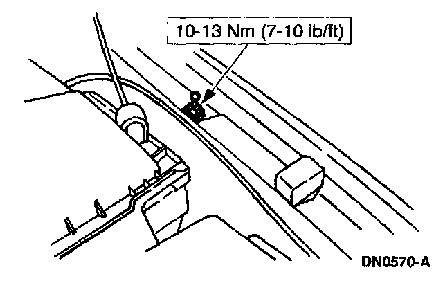 12. Remove the hood support bolt.