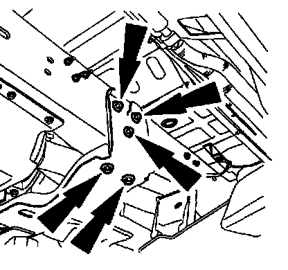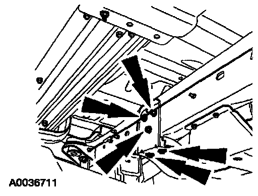 4. Remove the LH crossmember bolts and nuts.
