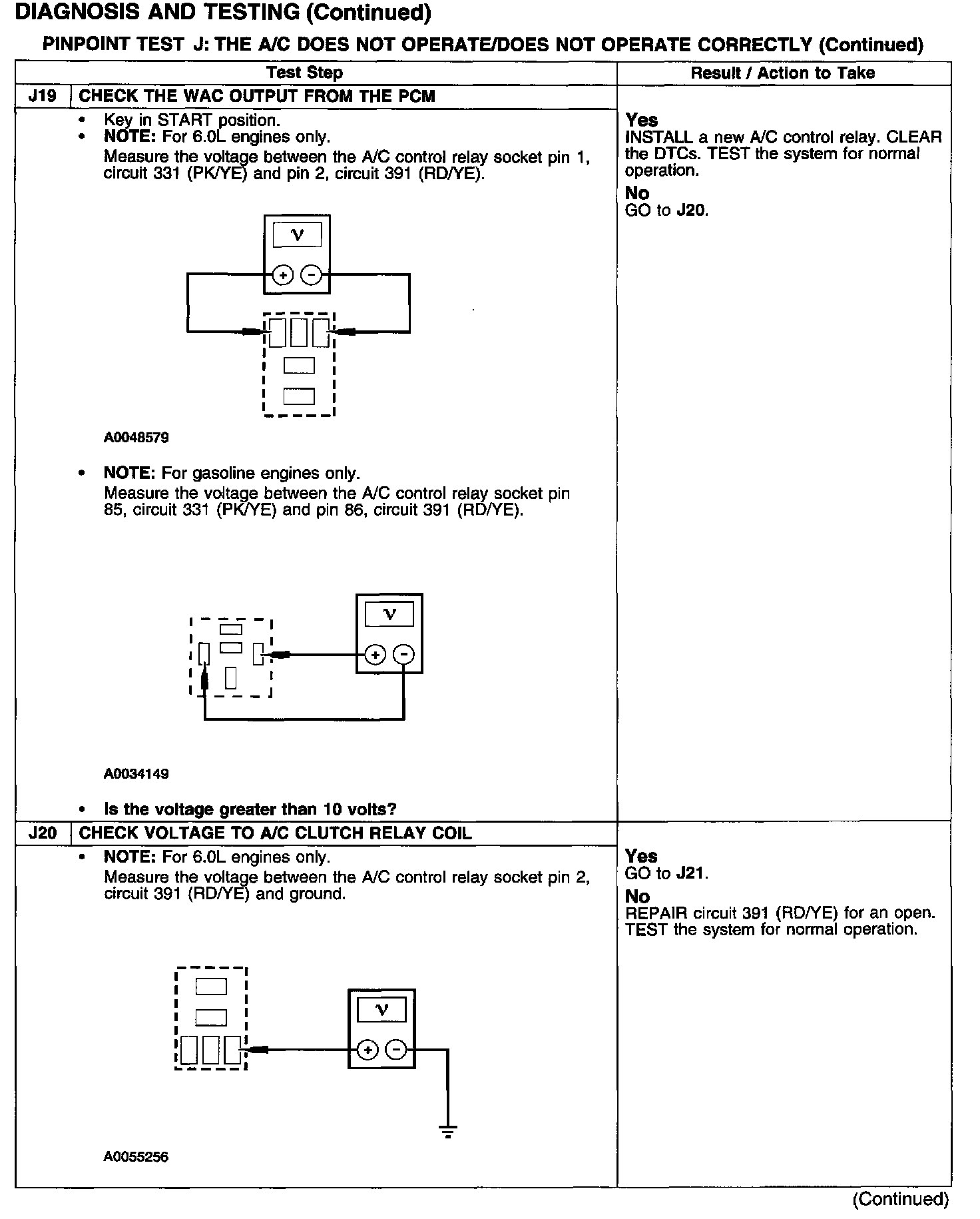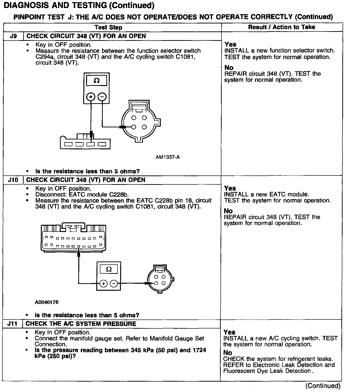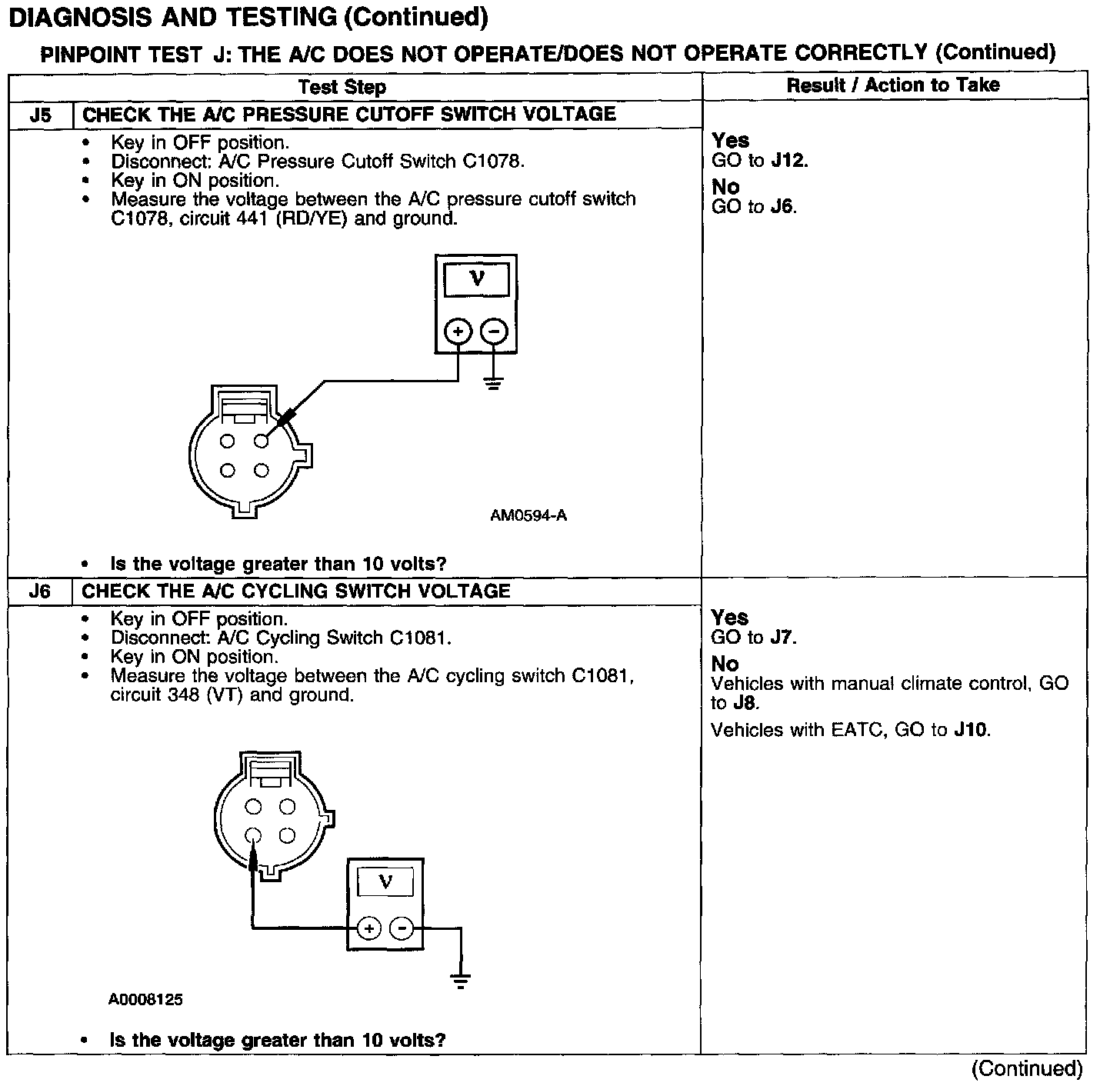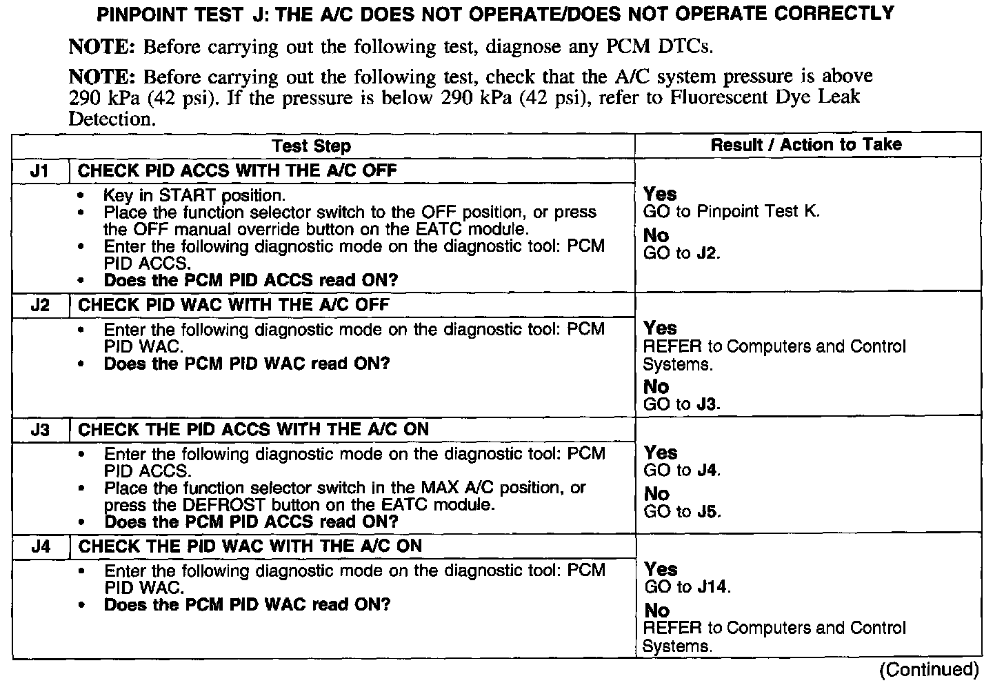 PINPOINT TEST J: THE A/C DOES NOT OPERATE/DOES NOT OPERATE CORRECTLYTest J1-J4:
