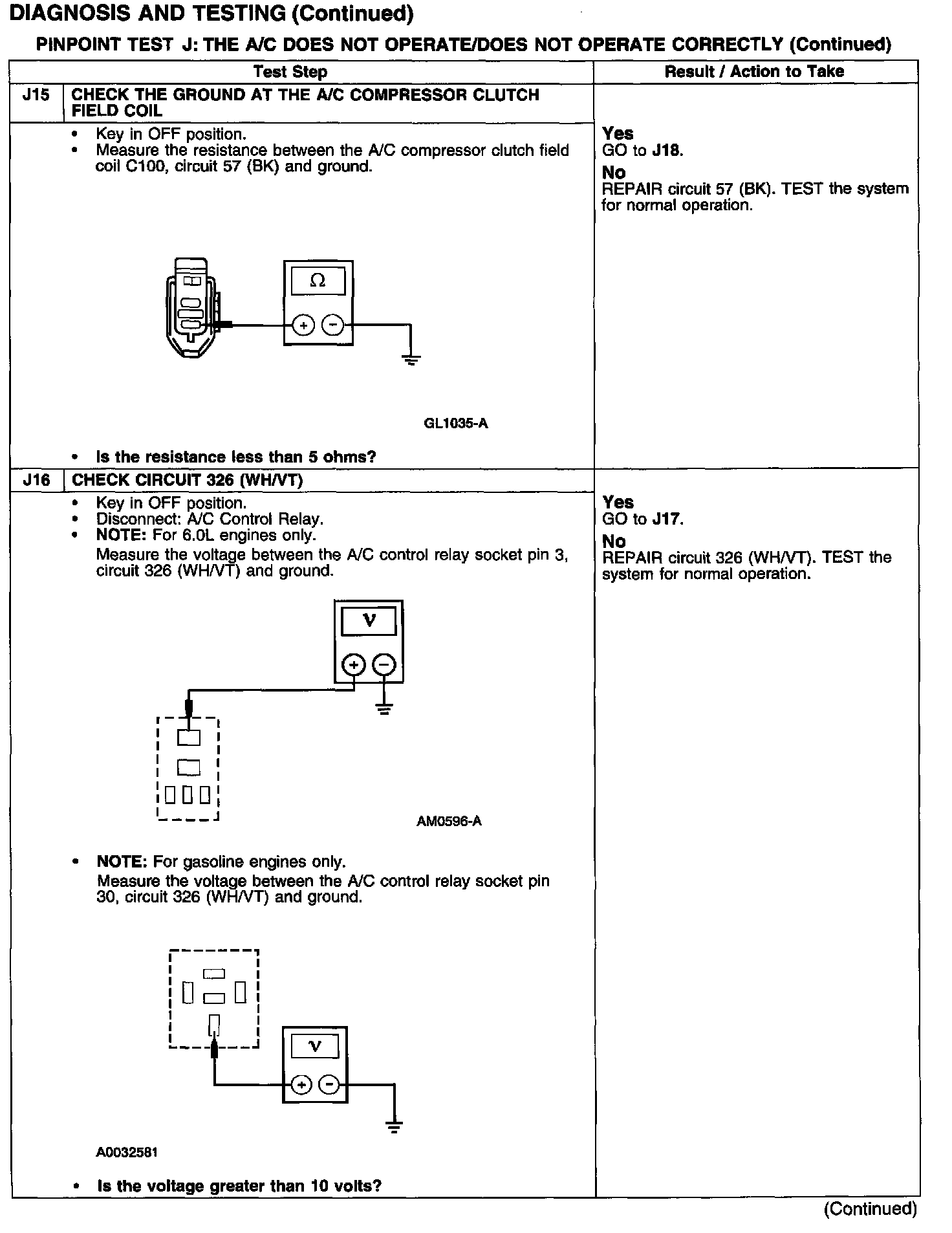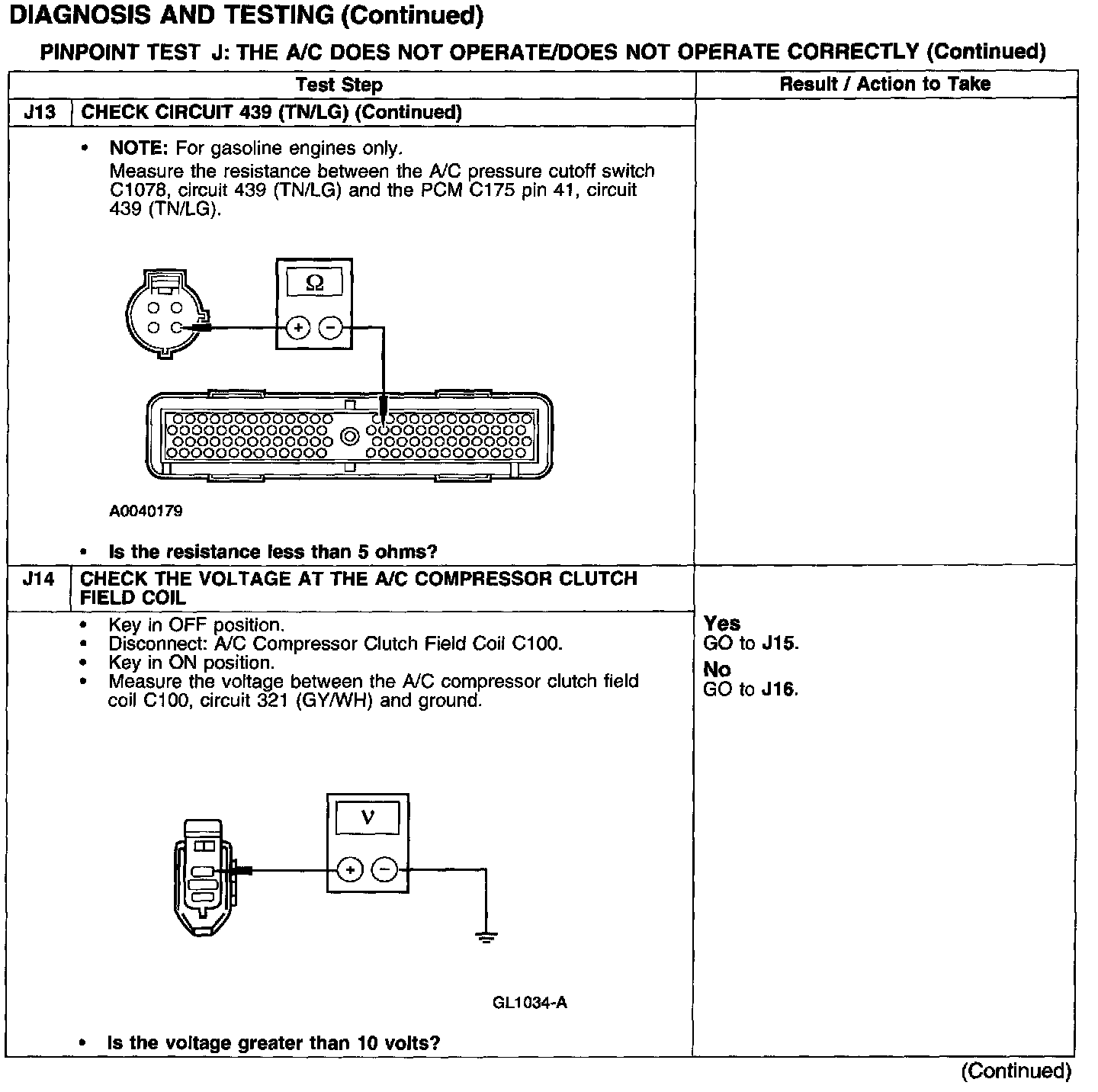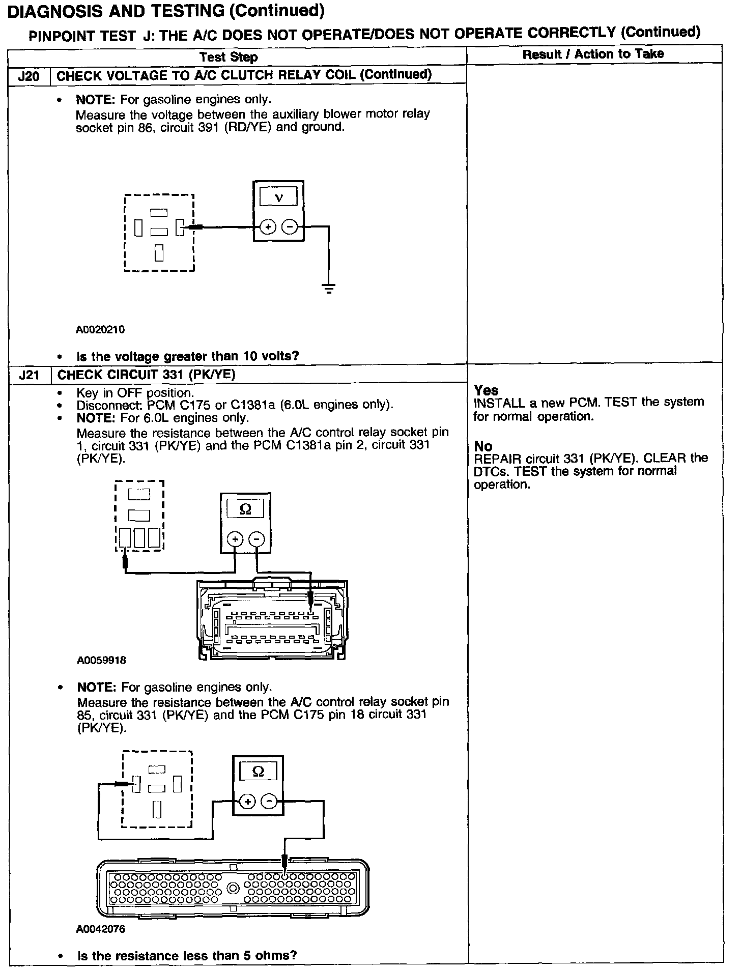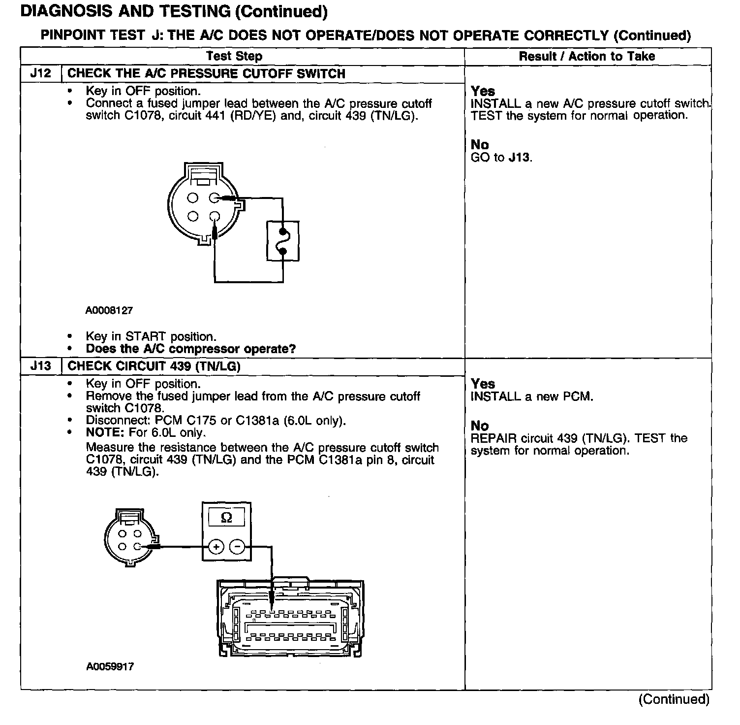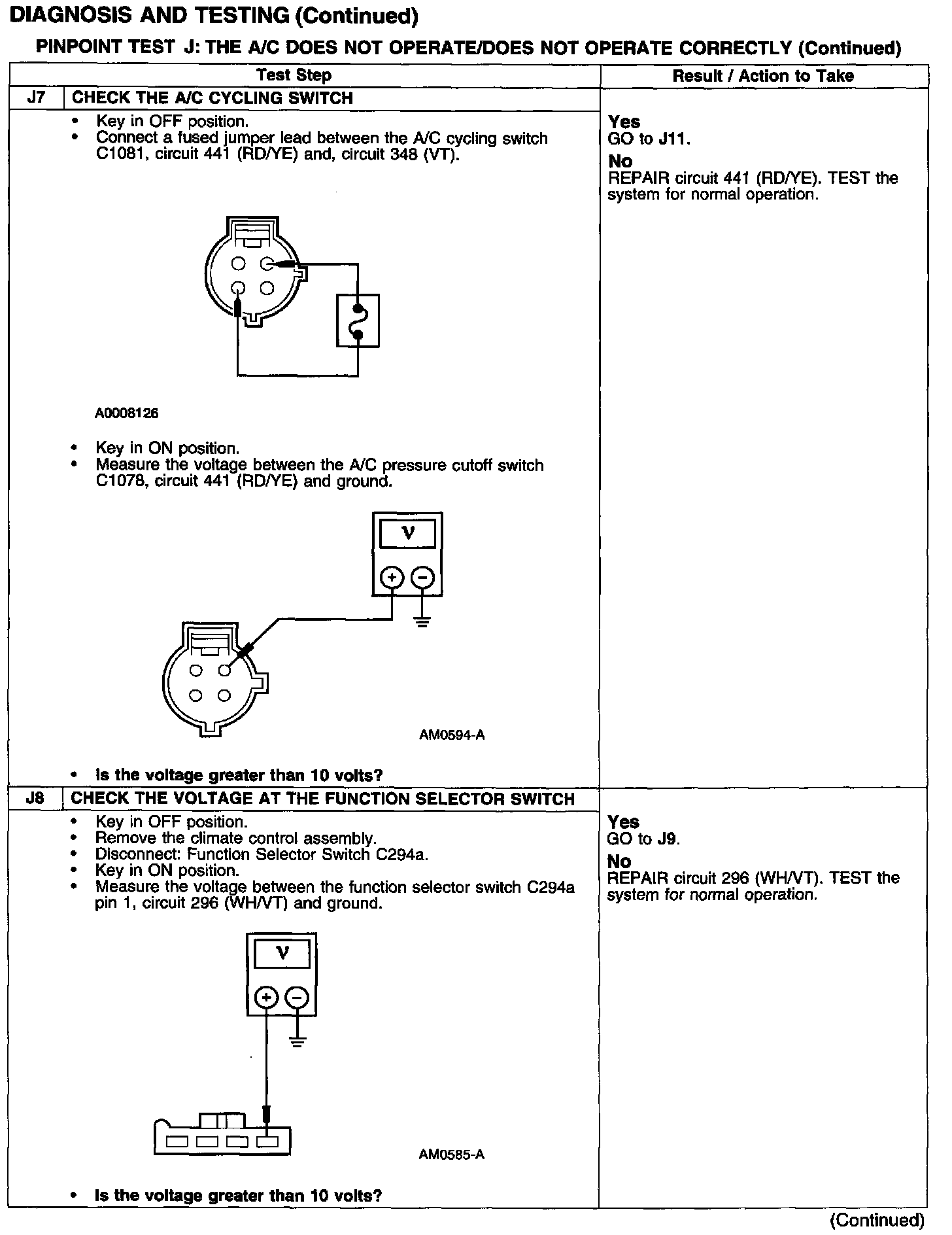 PINPOINT TEST J: THE A/C DOES NOT OPERATE/DOES NOT OPERATE CORRECTLYTest J1-J4: