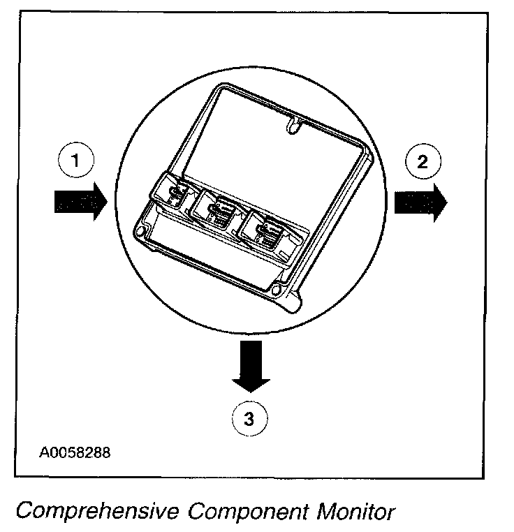 Comprehensive Component Monitor illustration has numerous components and signals involved and is shown generically. When referring to the illustrations, match the numbers to the corresponding numbers in the monitor descriptions for a better comprehension of the monitor and associated Diagnostic Trouble Codes (DTCs).