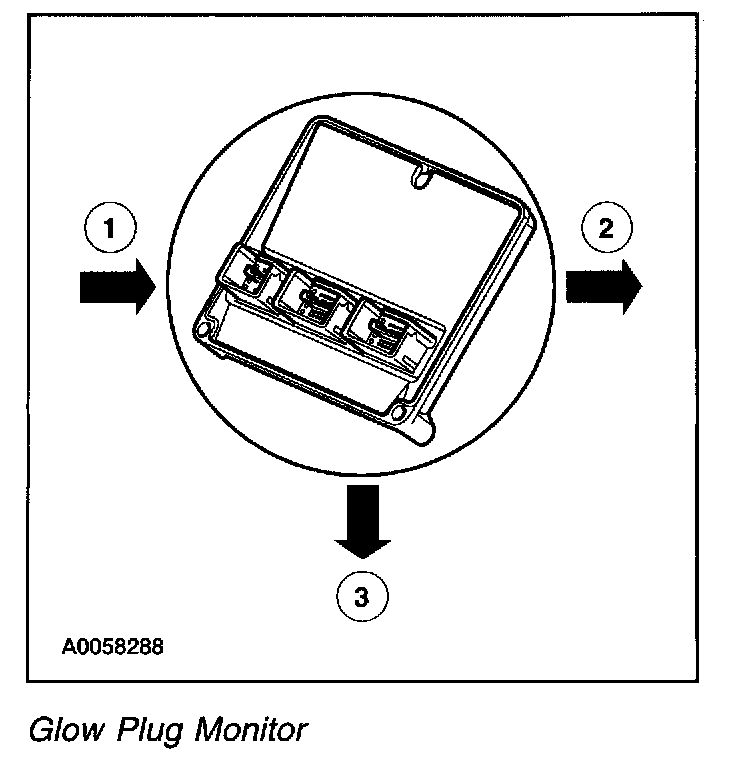 The Glow Plug Monitor Self Test is a functional KOER test of the Powertrain Control Module (PCM) performed on demand with the engine running and the A/C off. The PCM will activate the GPCM which monitors the glow plugs. The pedal may be used to increase the engine speed to increase voltage if needed. A fault must be present at the time of testing for the test to detect a fault. The DTCs will be sent to the PCM on the diagnostic line and output to the scan tool.