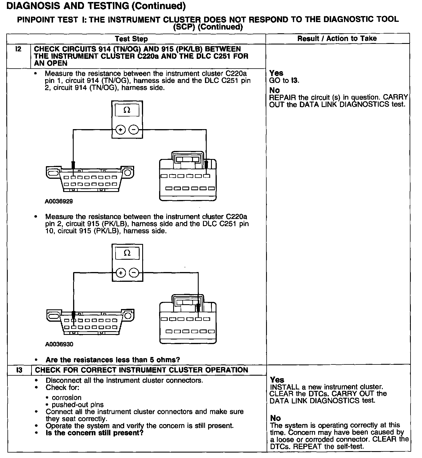 PINPOINT TEST I: THE INSTRUMENT CLUSTER DOES NOT RESPOND TO THE DIAGNOSTIC TOOL (SCP)
