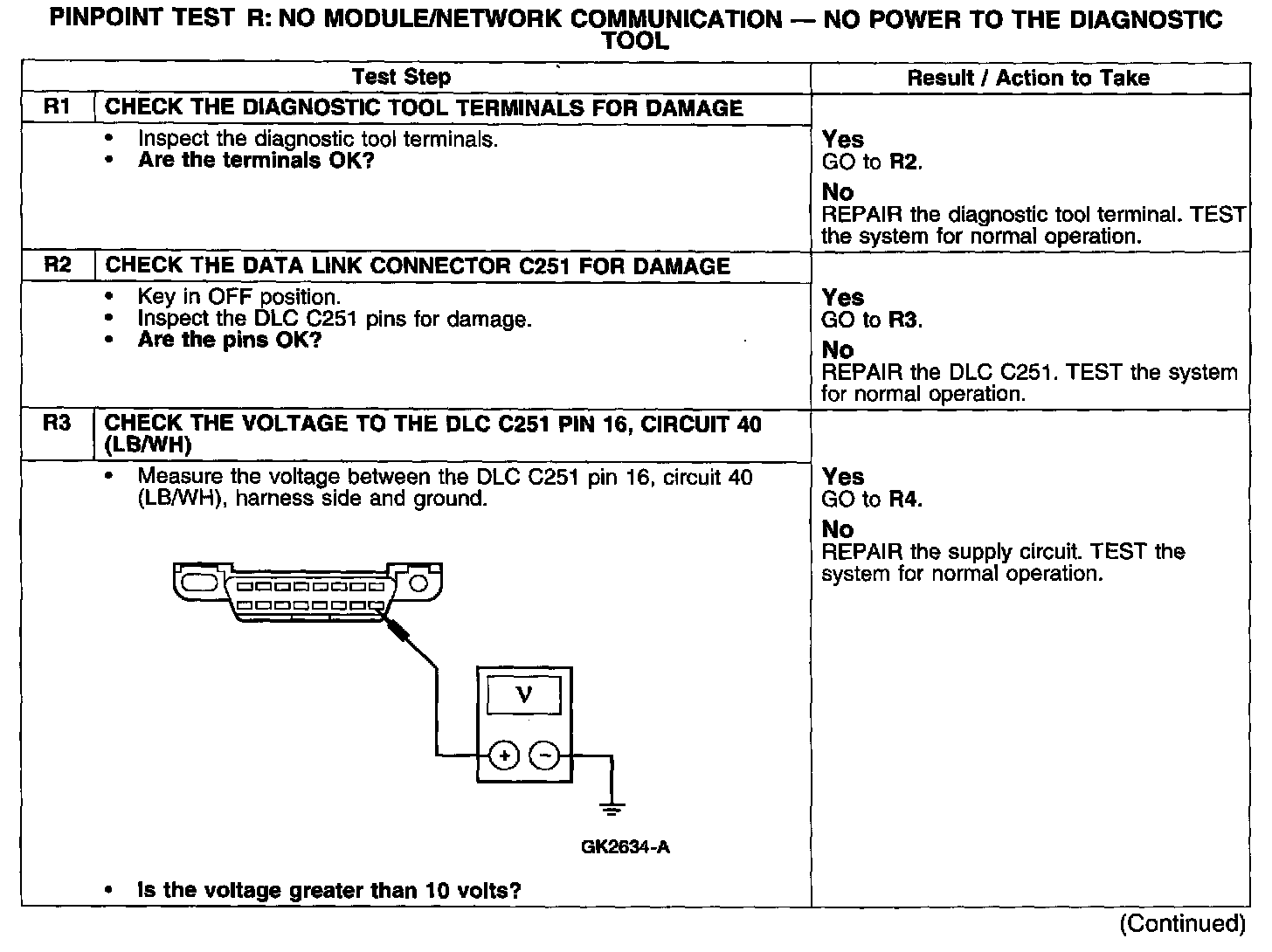 PINPOINT TEST R: NO MODULE/NETWORK COMMUNICATION - NO POWER TO THE DIAGNOSTIC TOOL