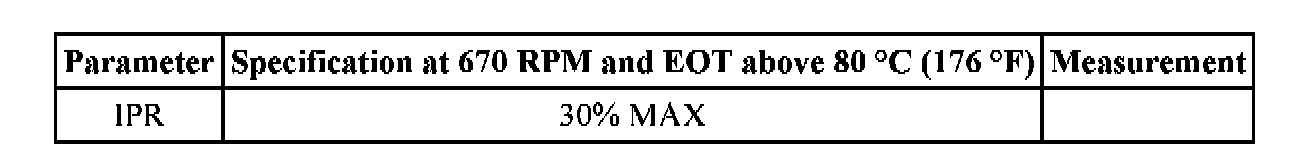 ^ Check during startup and at low idle with EOT above 80 °C (176 °F).