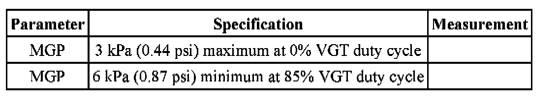 ^ Control the VGT duty cycle to 0% and 85% with the scan tool.