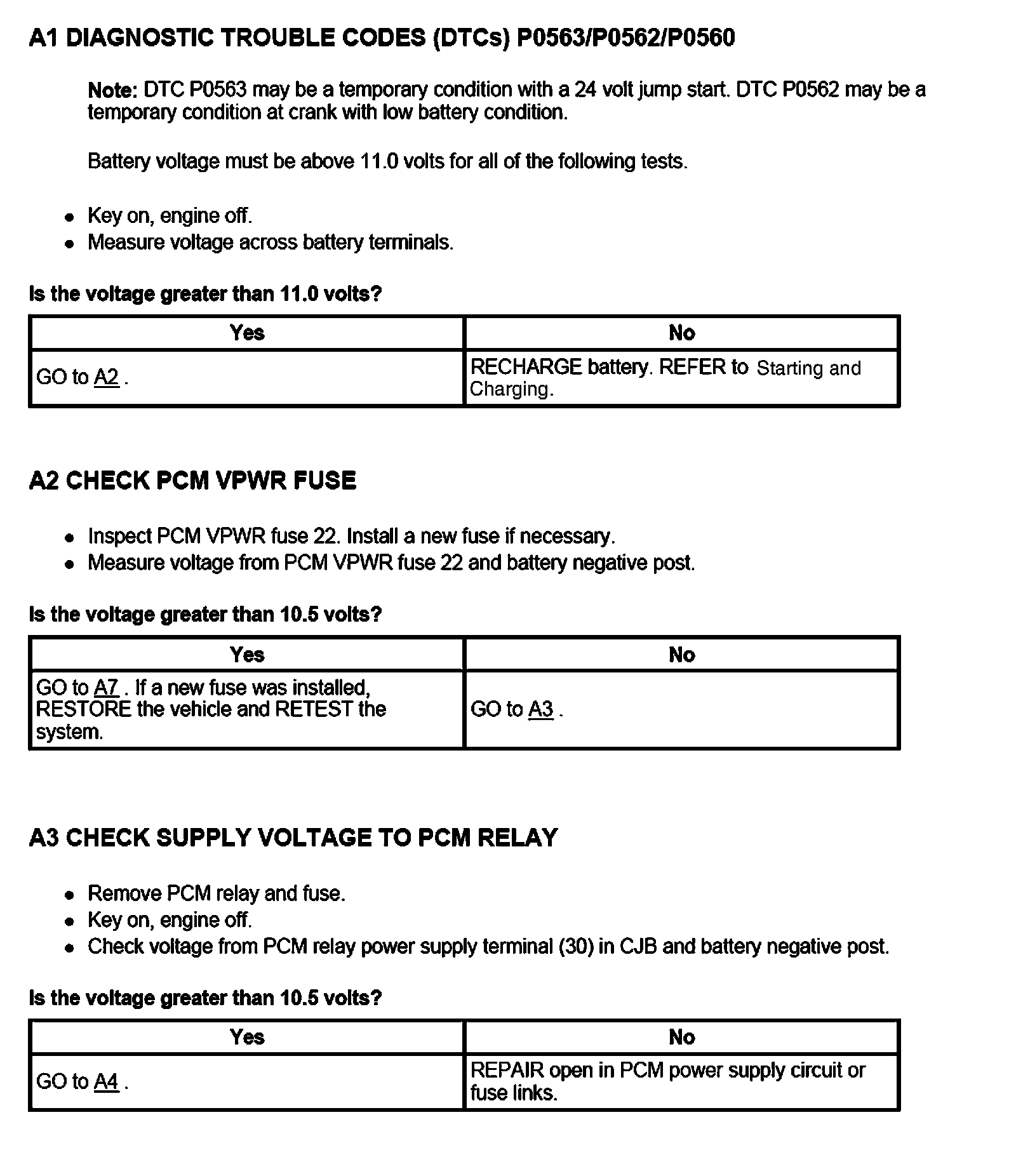 PINPOINT TEST A: VEHICLE BATTERY