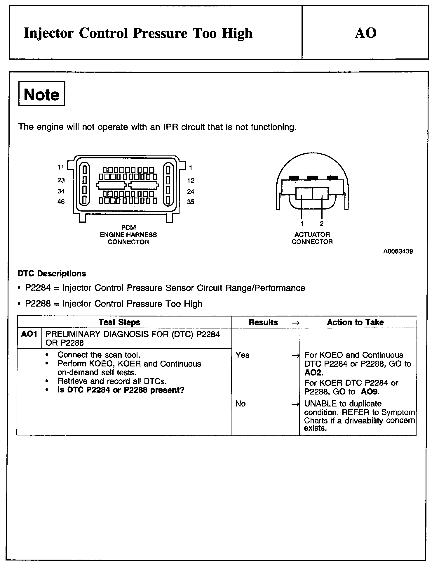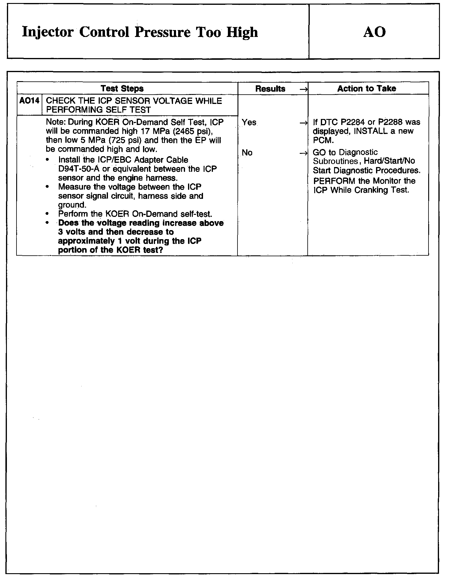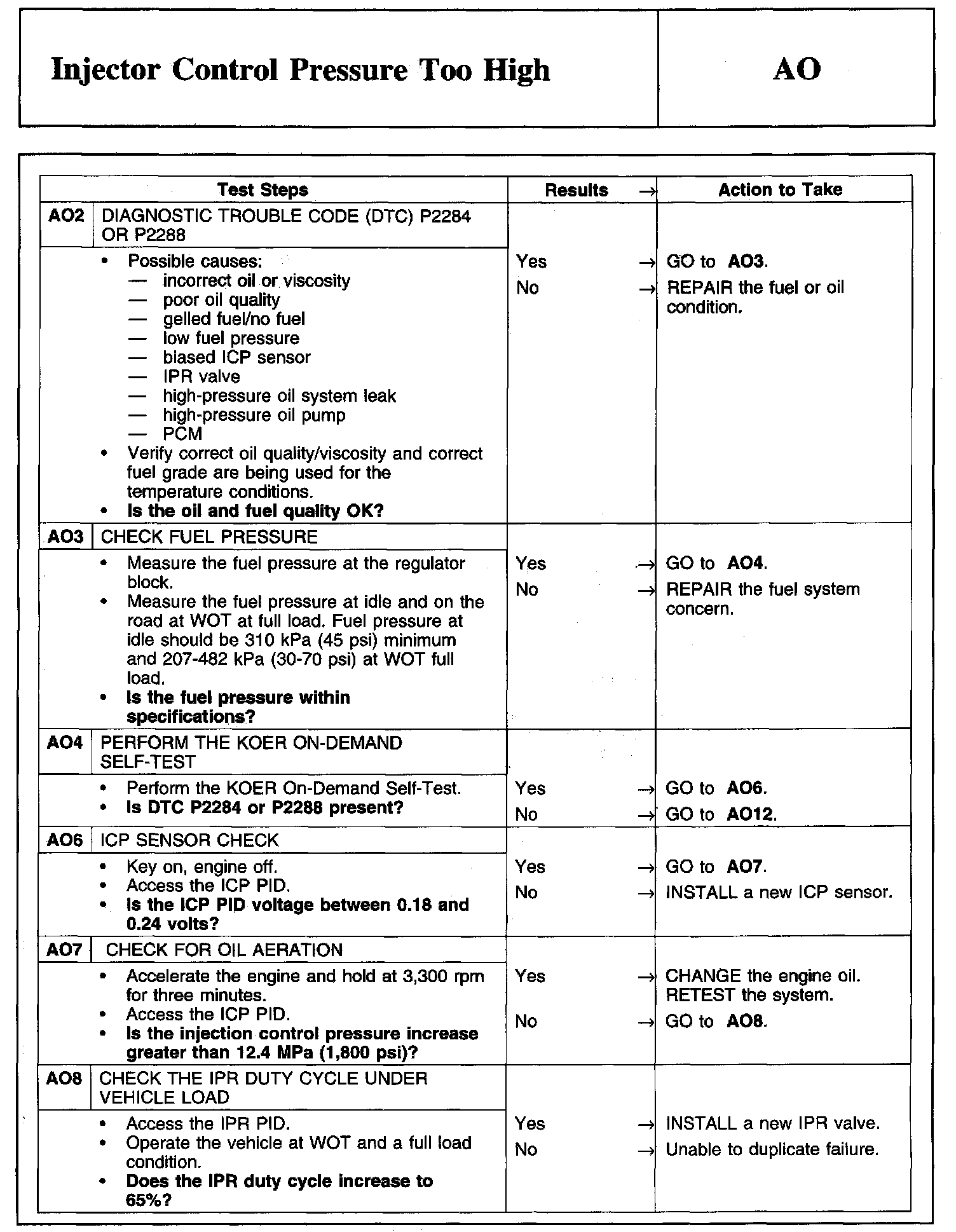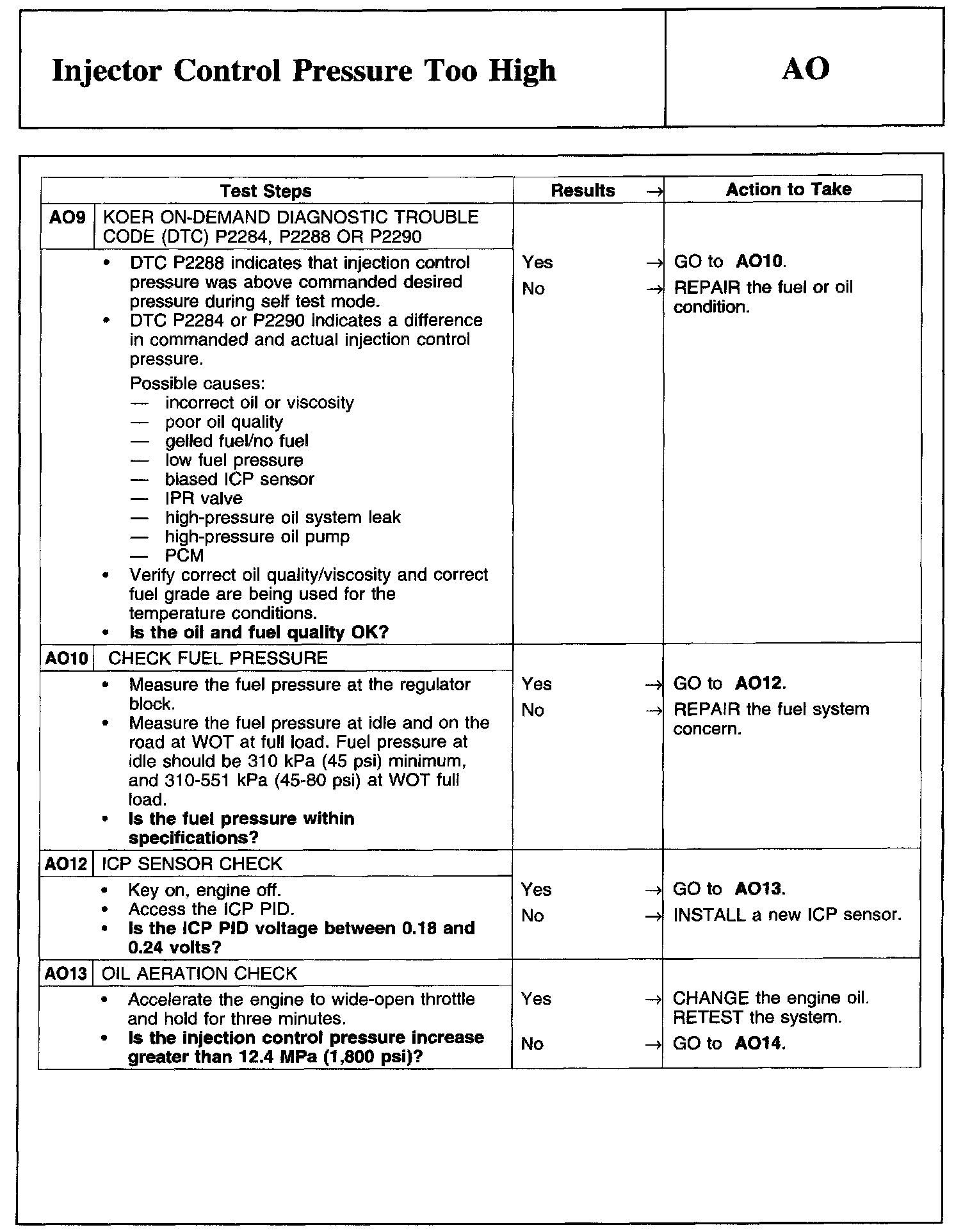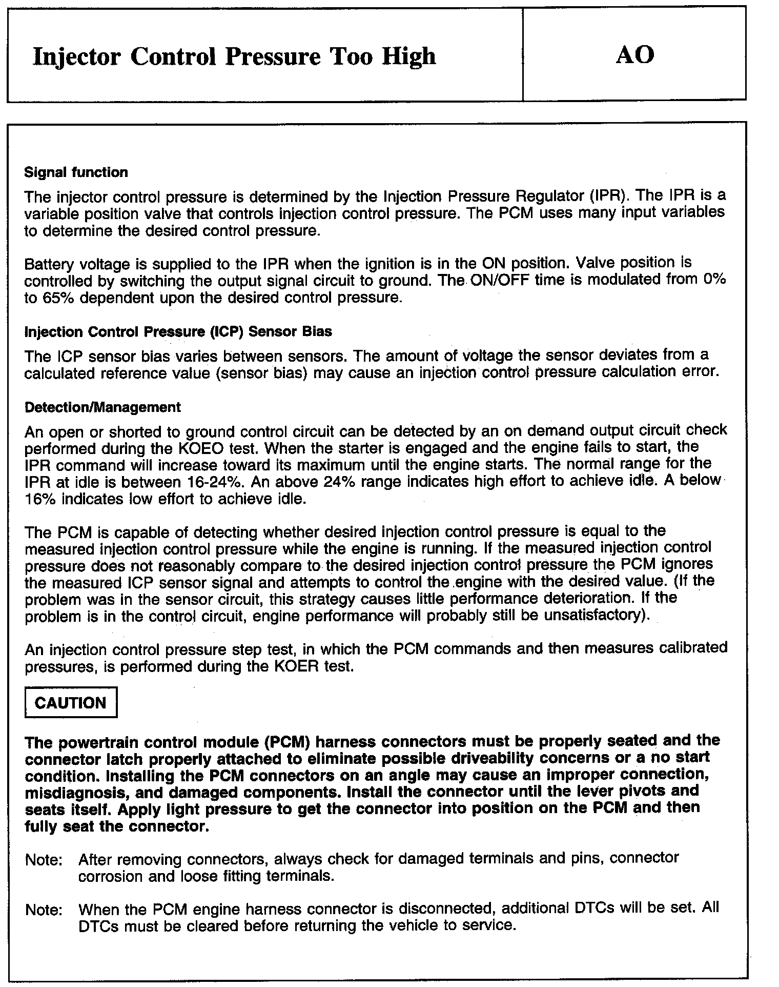 PINPOINT TEST AO: INJECTOR CONTROL PRESSURE TOO HIGH