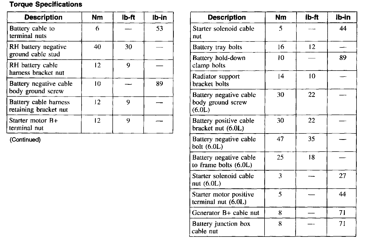 Torque Specifications: