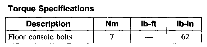 Torque Specifications:
