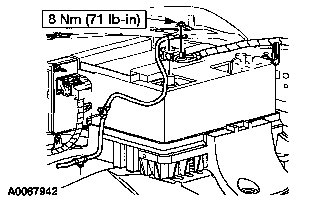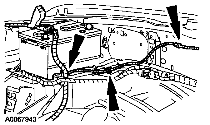 NOTE: Position the LH splash shield aside for access to battery negative cable bolt.