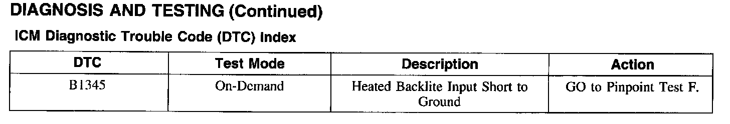 Instrument Cluster Module (ICM) Diagnostic Trouble Code Index
