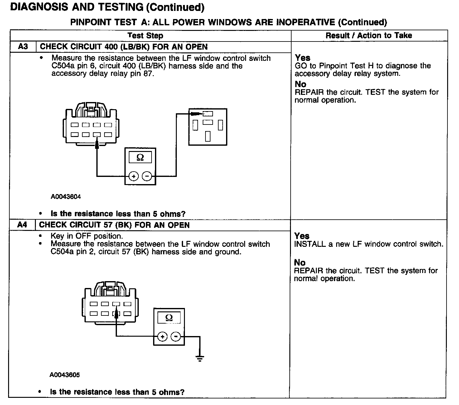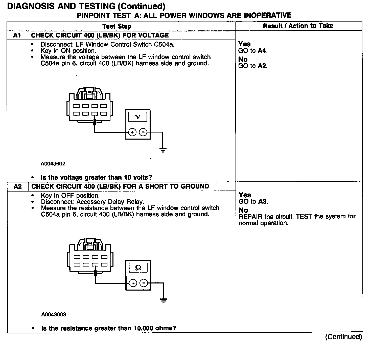 PINPOINT TEST A: ALL POWER WINDOWS ARE INOPERATIVE