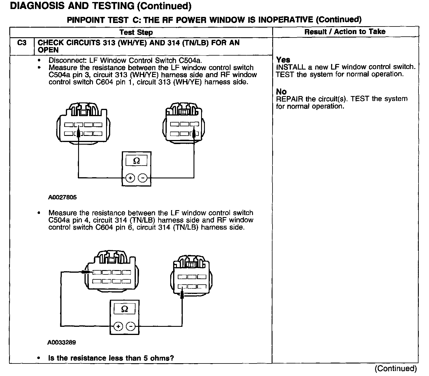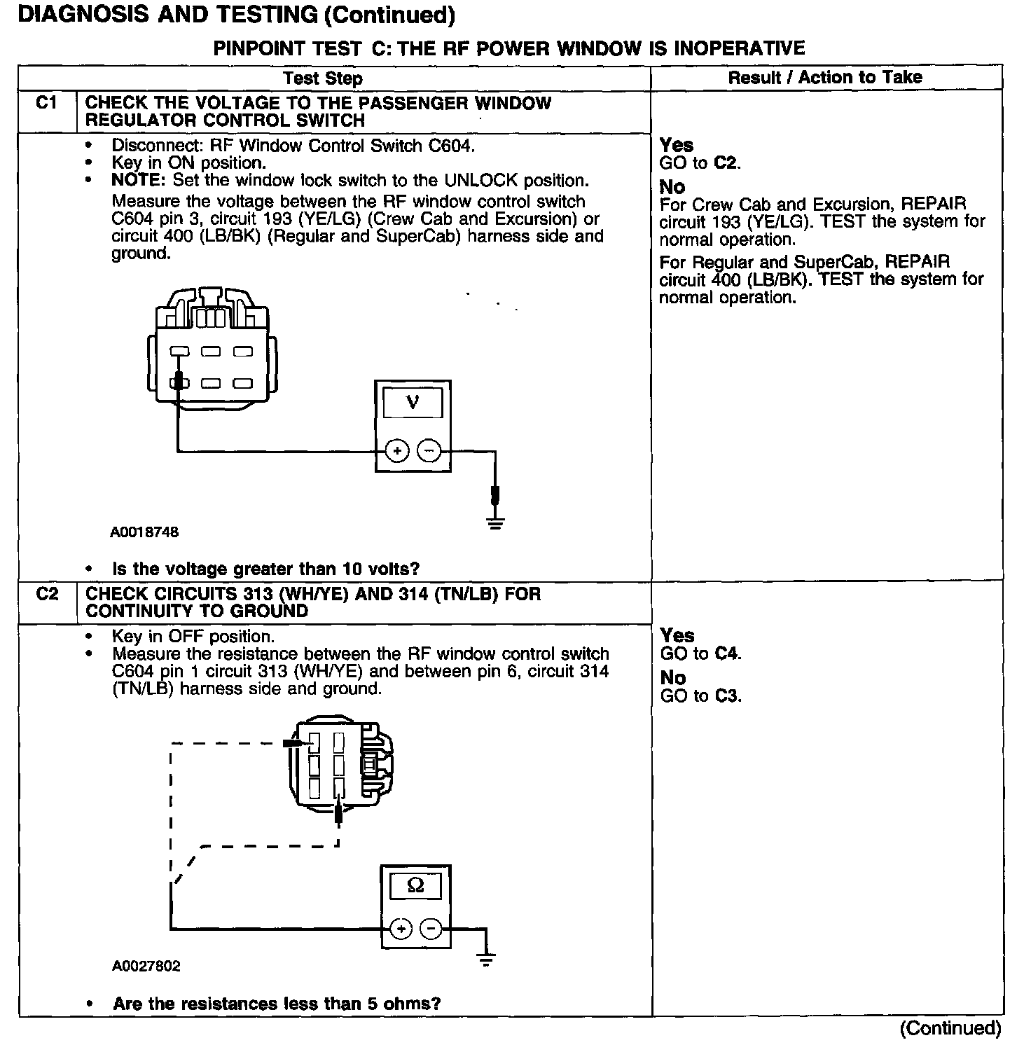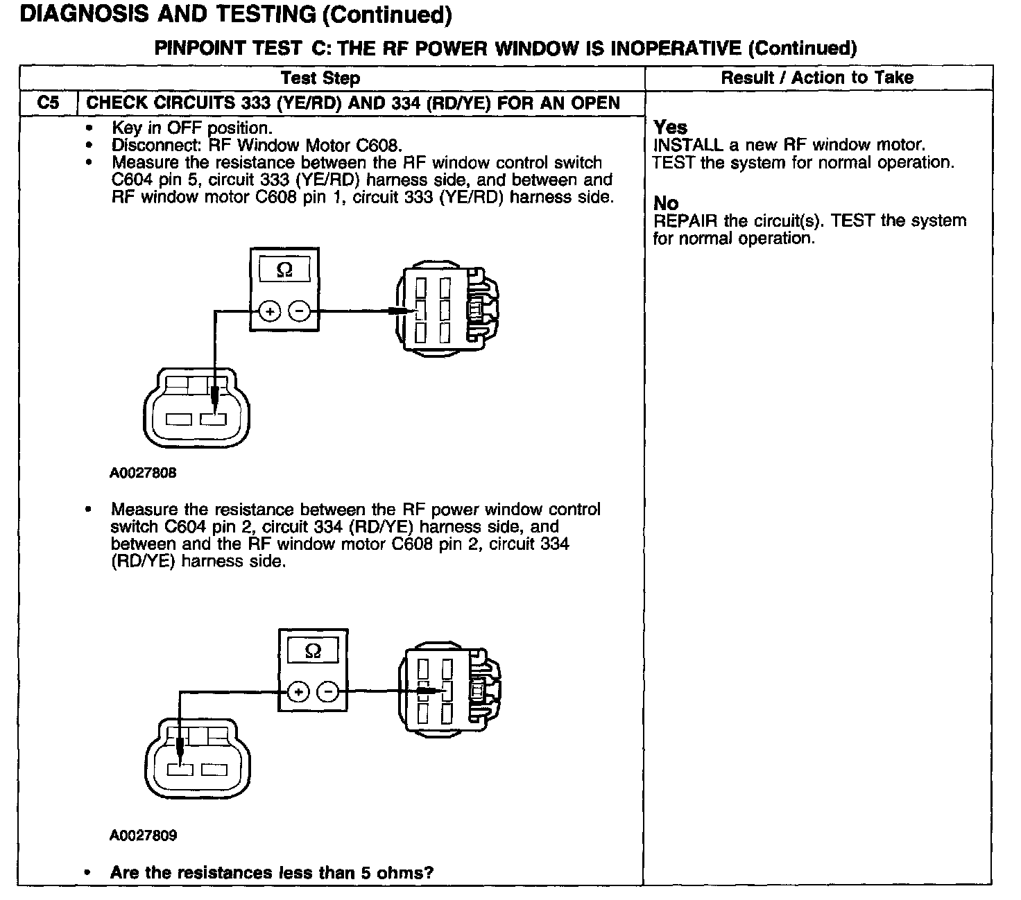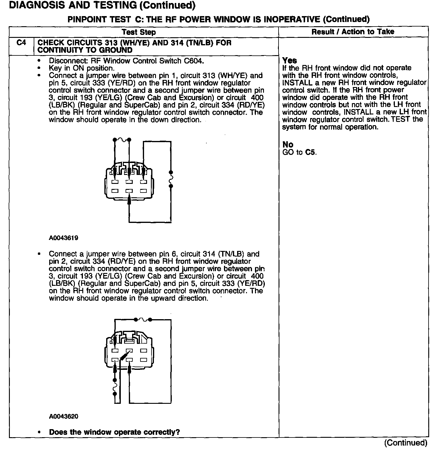 PINPOINT TEST C: THE RF POWER WINDOW IS INOPERATIVE