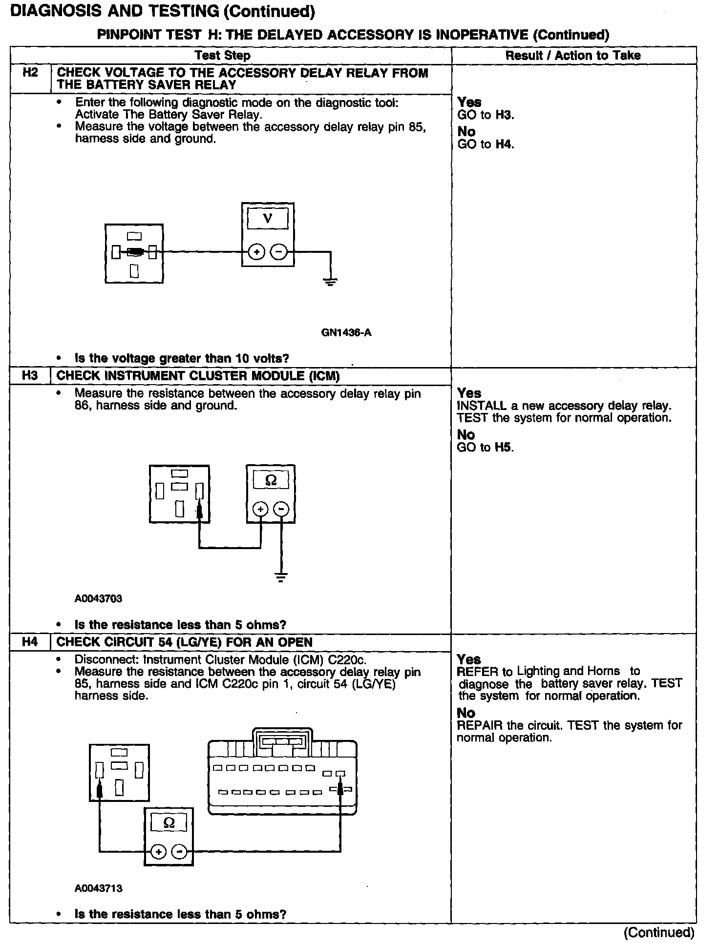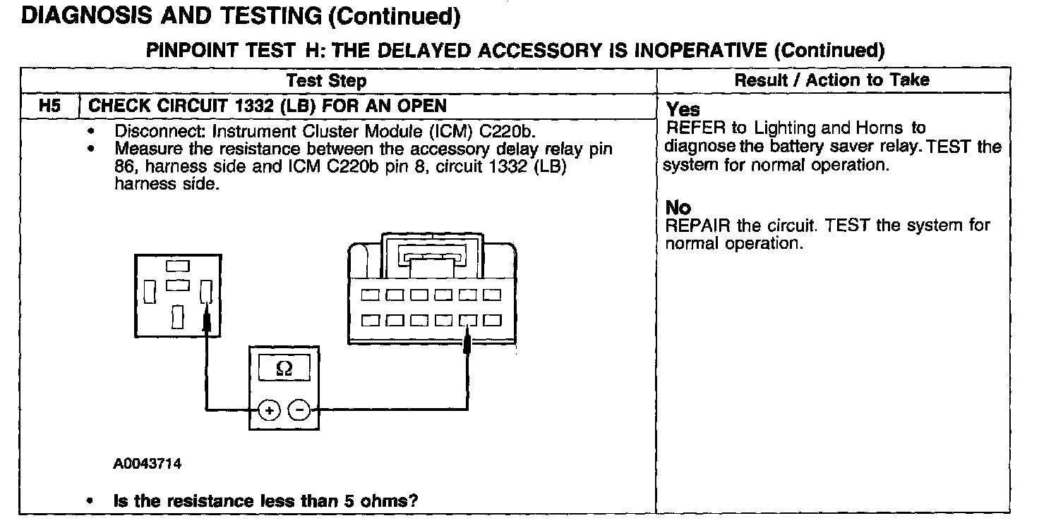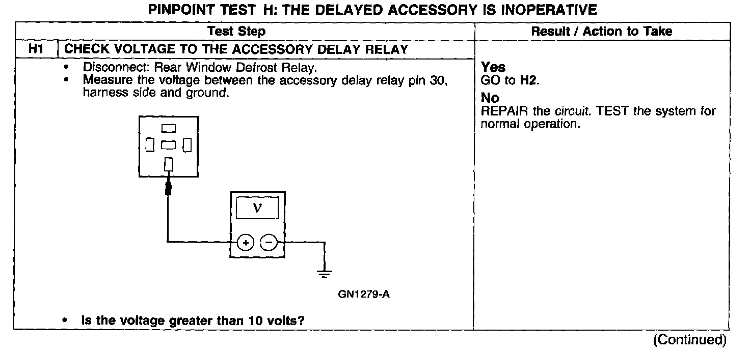 PINPOINT TEST H: THE DELAYED ACCESSORY IS INOPERATIVE