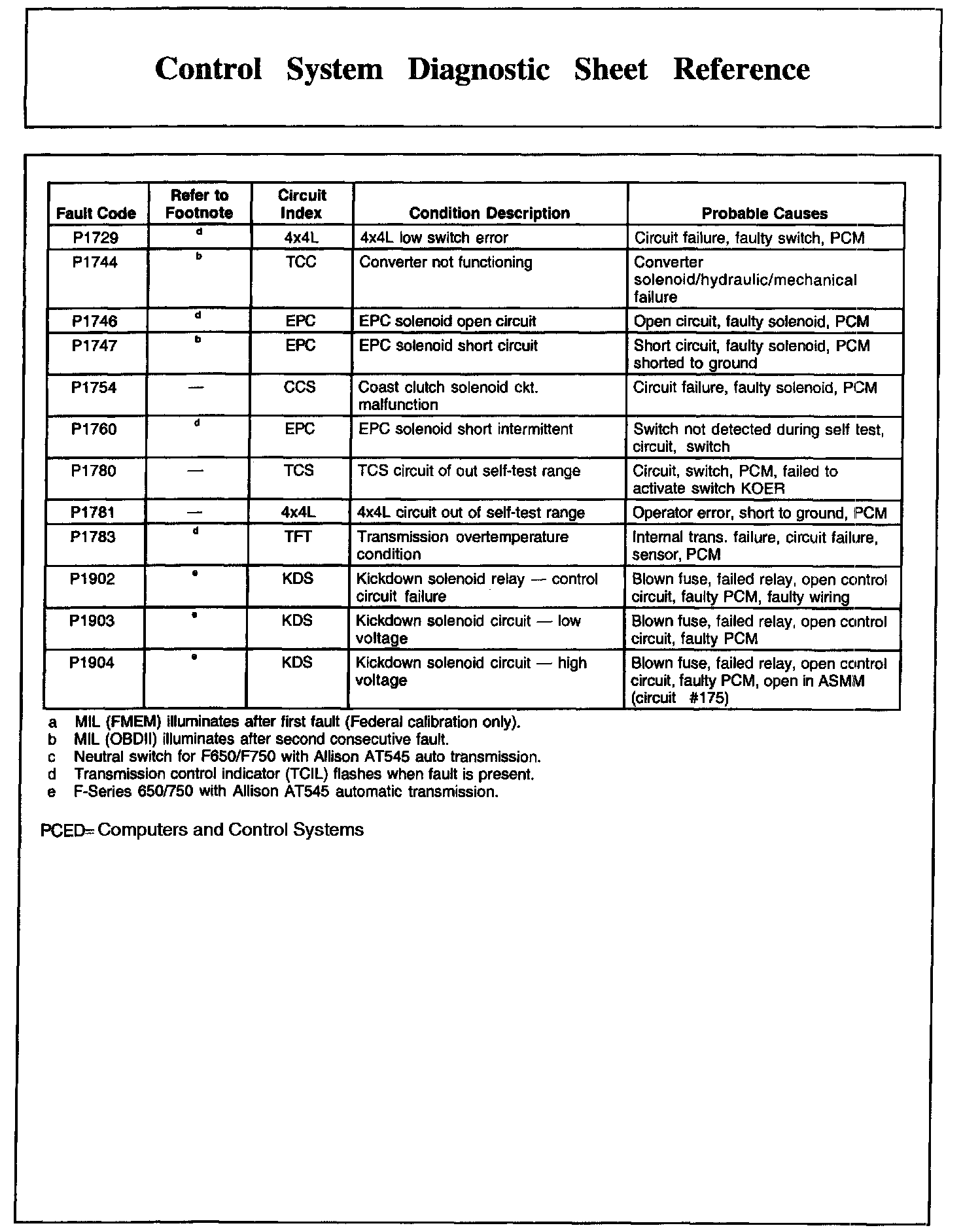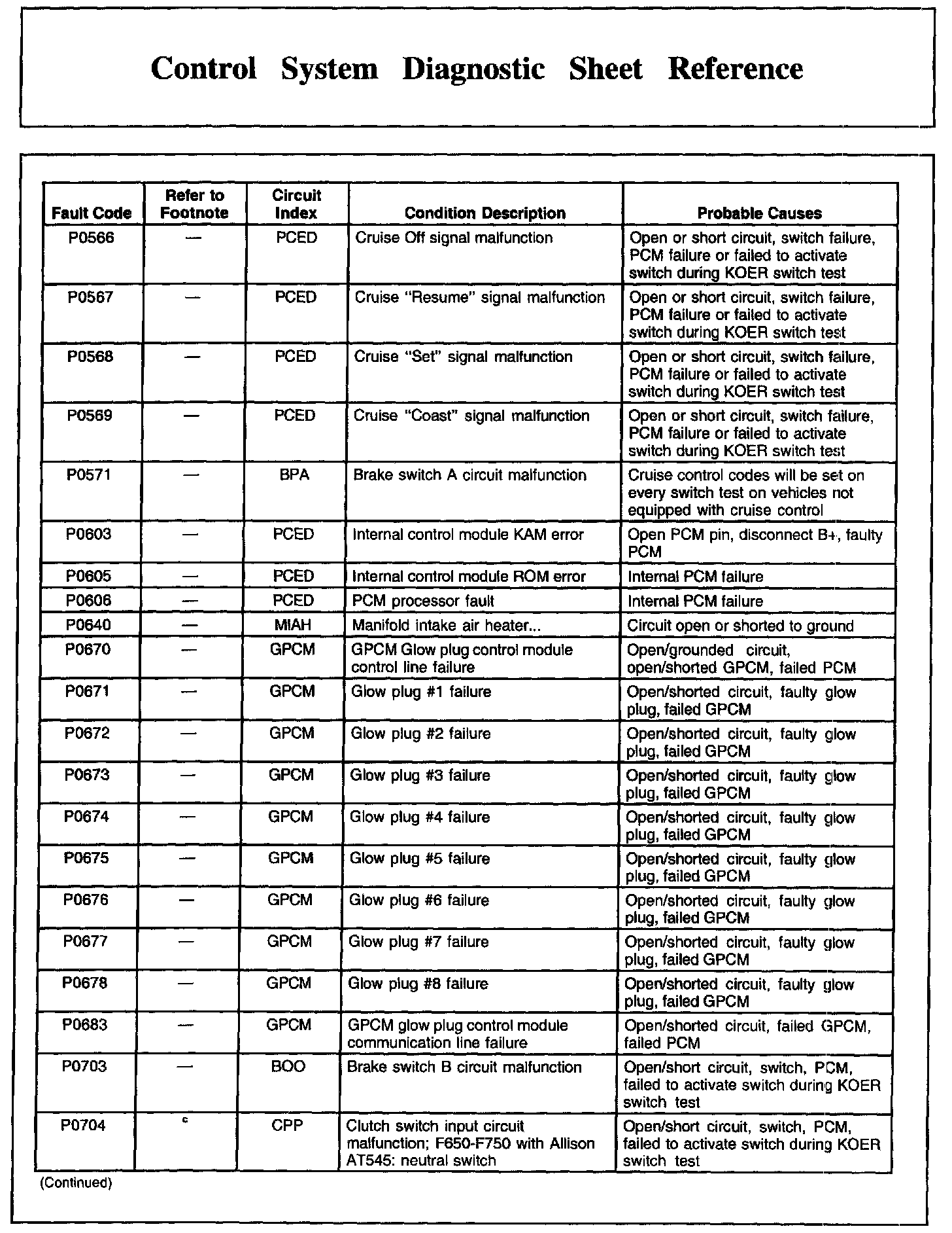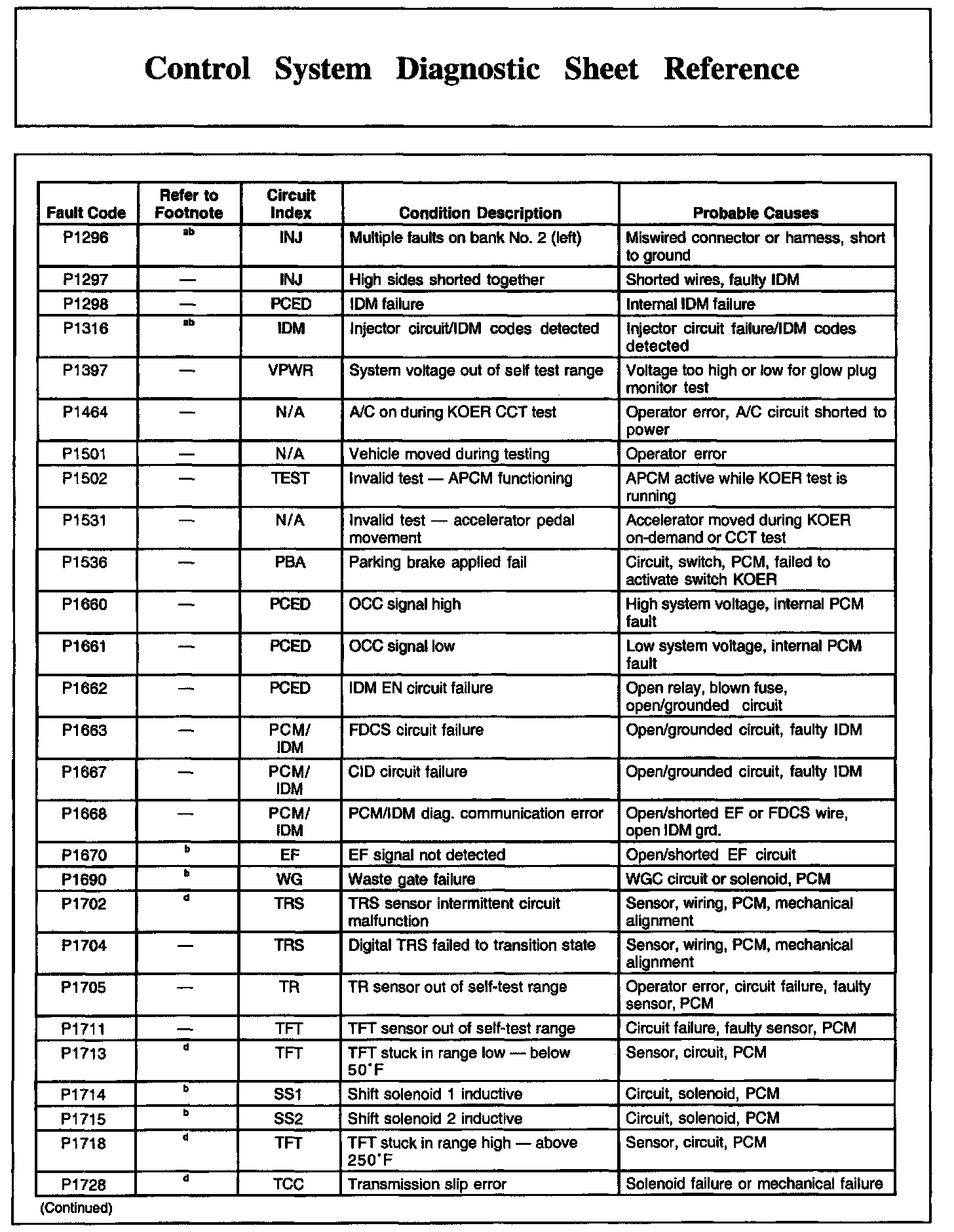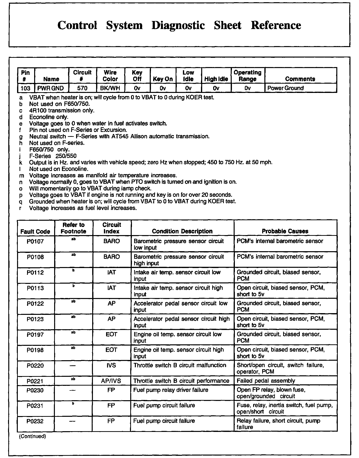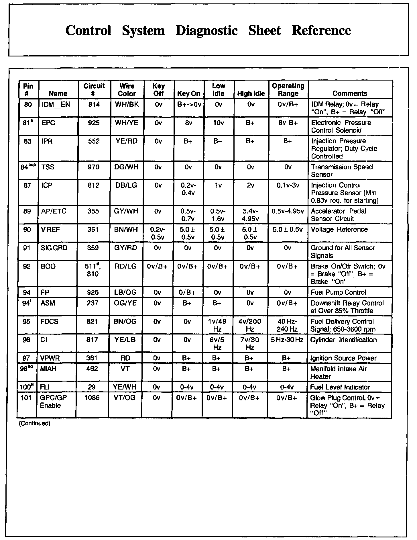 Control System Diagnostic Sheet Reference, Part 2: