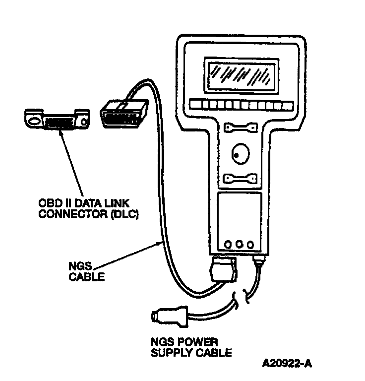 The NGS Tester or generic scan tool must be connected to the Data Link Connector (DLC) for communication with the vehicle.