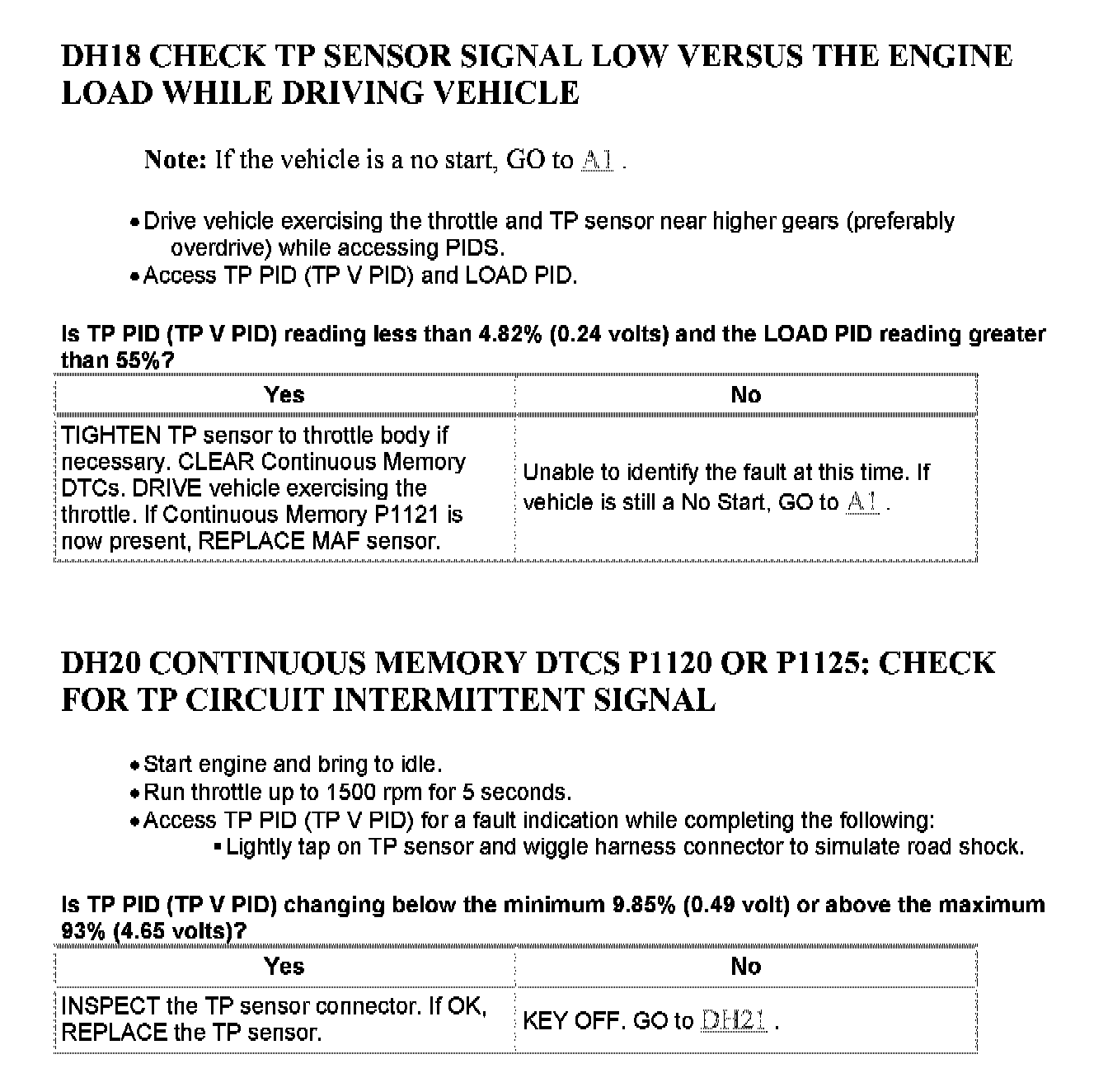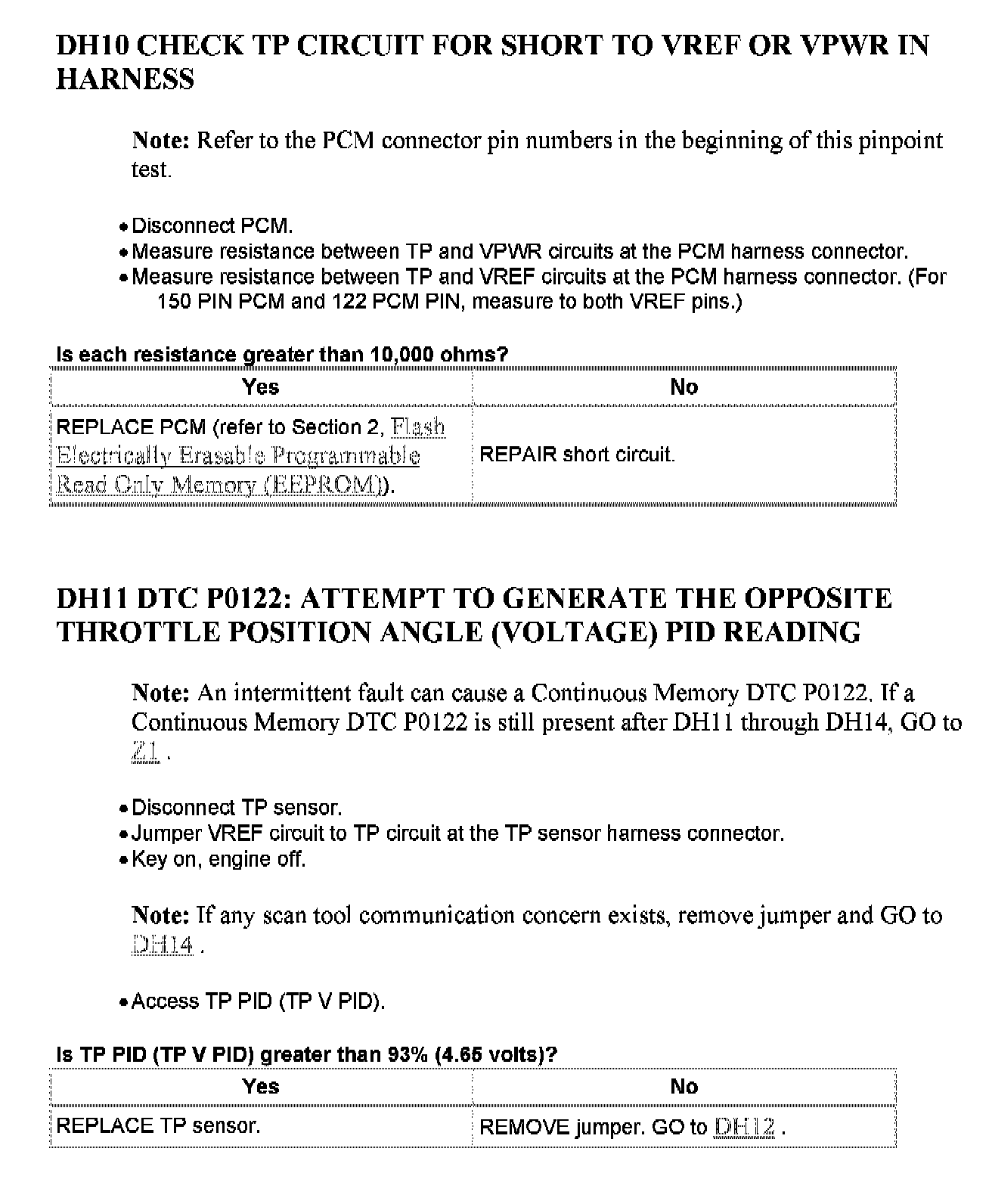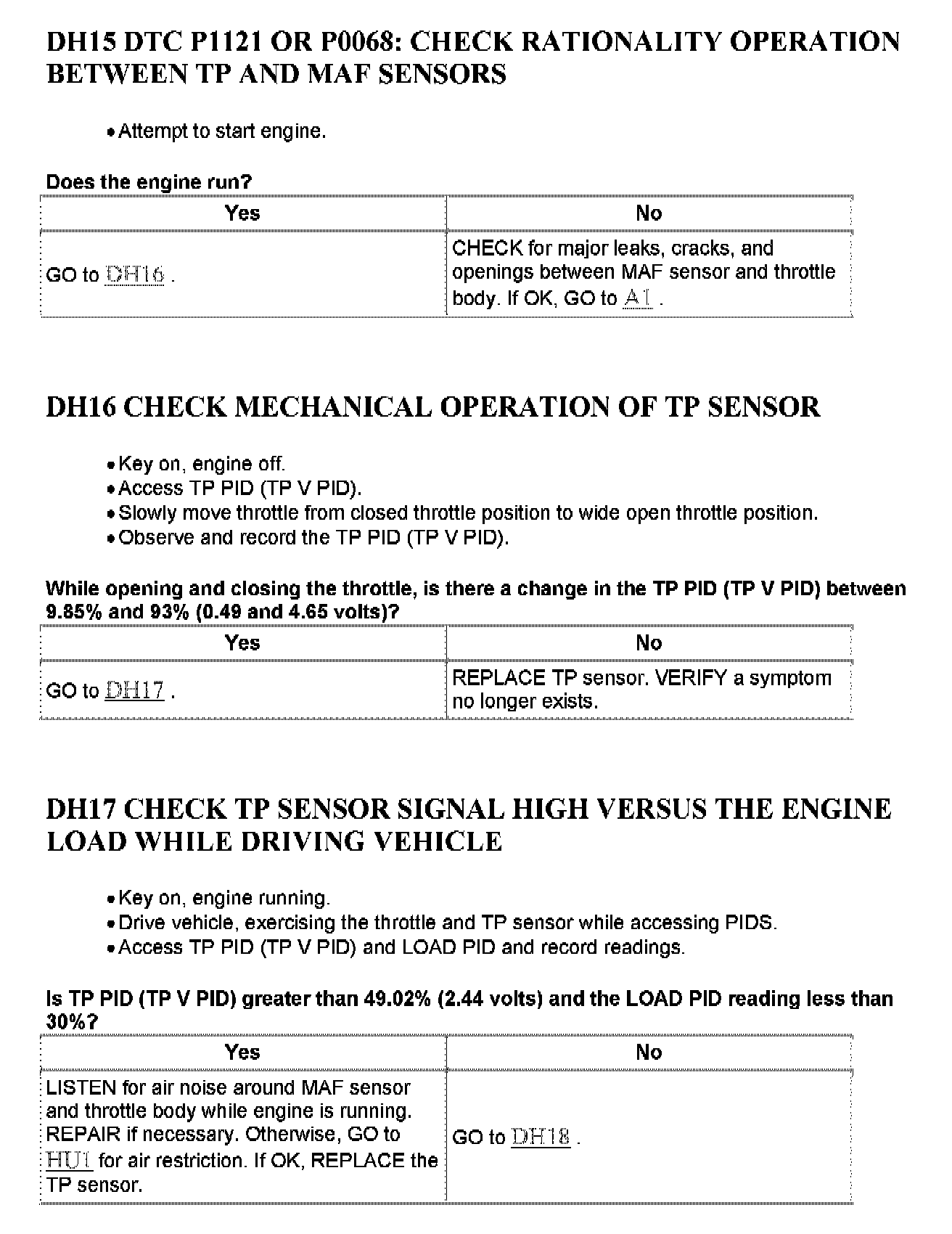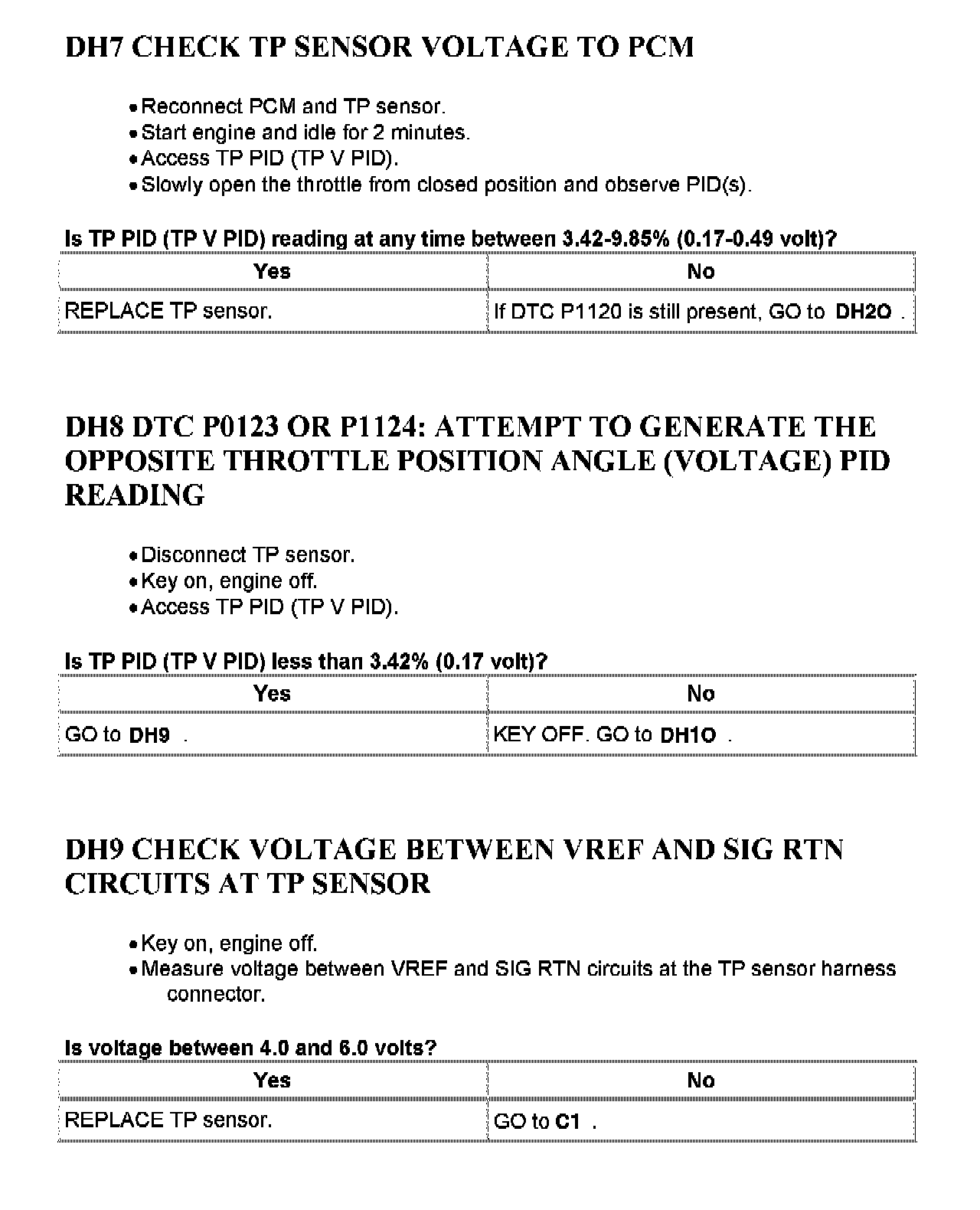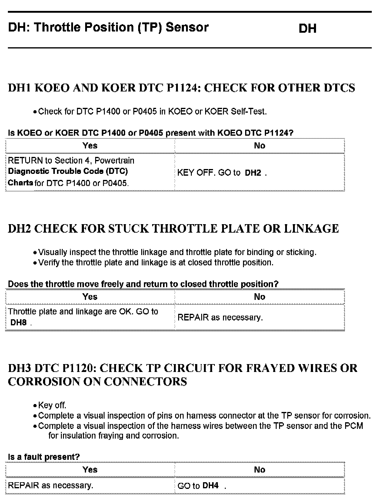 Tests DH: Throttle Position (TP) Sensor