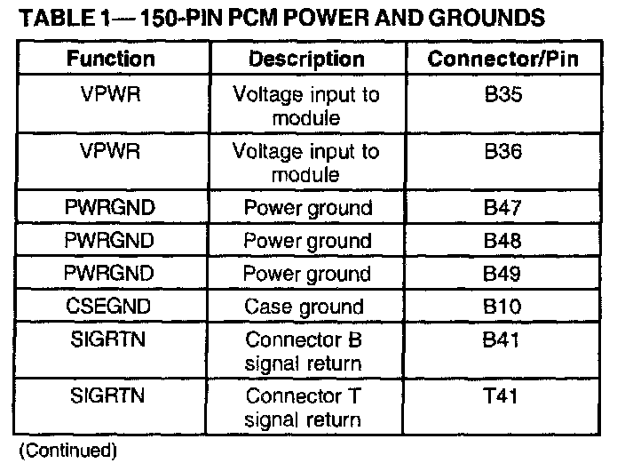 The center of the Electronic EC system is a microprocessor called the Powertrain Control Module (PCM). The PCM receives input from sensors and other electronic components (switches, relays). Based on information received and programmed into its memory, the PCM generates output signals to control various relays, solenoids and actuators. Currently, there are three types of PCM's in use; a 122-pin and 150-pin PCM which has three separate electrical harness connectors and a 104-pin PCM which has one electrical harness connector.