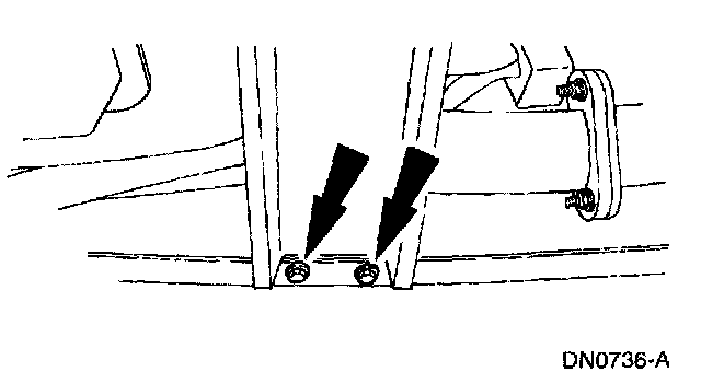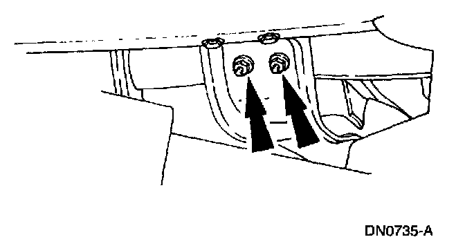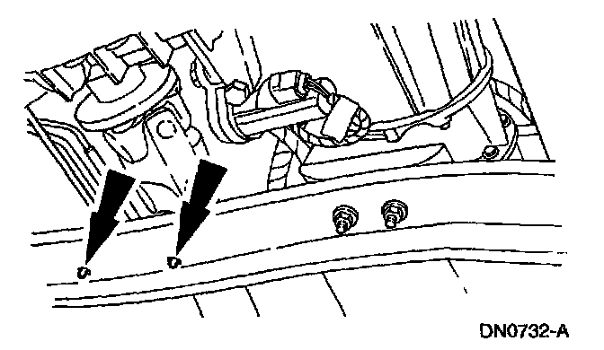 7. Remove the transmission support crossmember nuts and bolts (RH side).