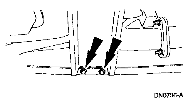 8. Remove the transmission support crossmember nuts and bolts (LH side).
