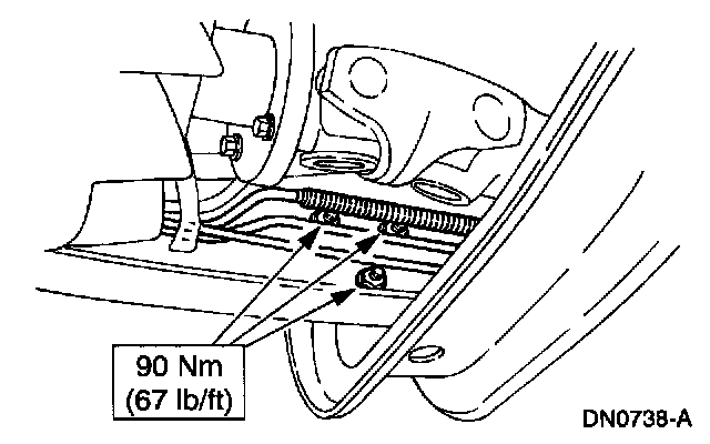 3. Tighten the transmission support crossmember nuts and bolts (LH side) to specification.