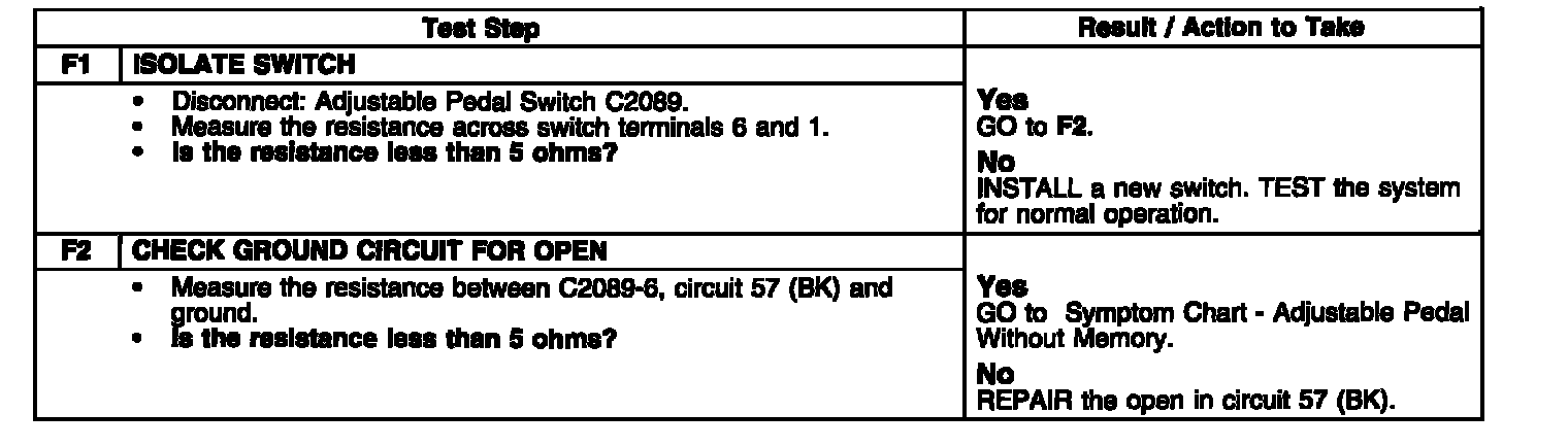 PINPOINT TEST F: ADJUSTABLE PEDAL MOVES FORWARD ONLY