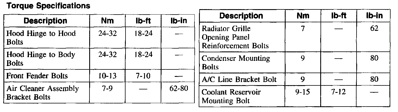 Torque Specifications:
