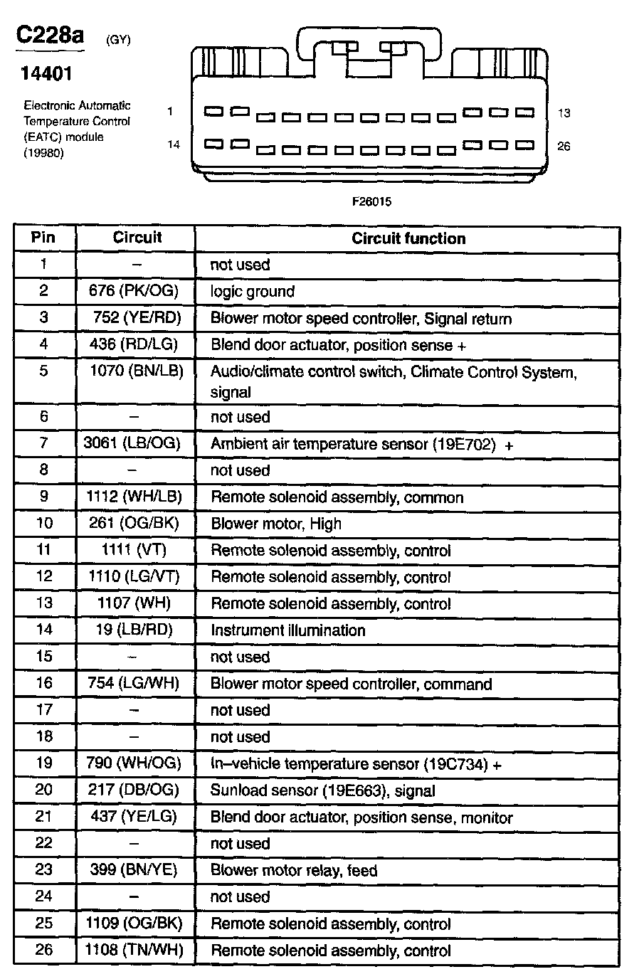 Home >> Ford >> 2003 >> Excursion 4WD V8-6.0L DSL Turbo >> Repair and Diagnosis >> Diagrams >> Connector Views >> Control Module HVAC >> Electronic Automatic Temperature Control Module