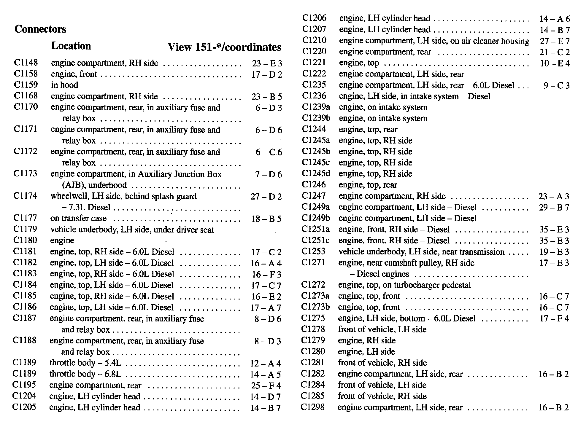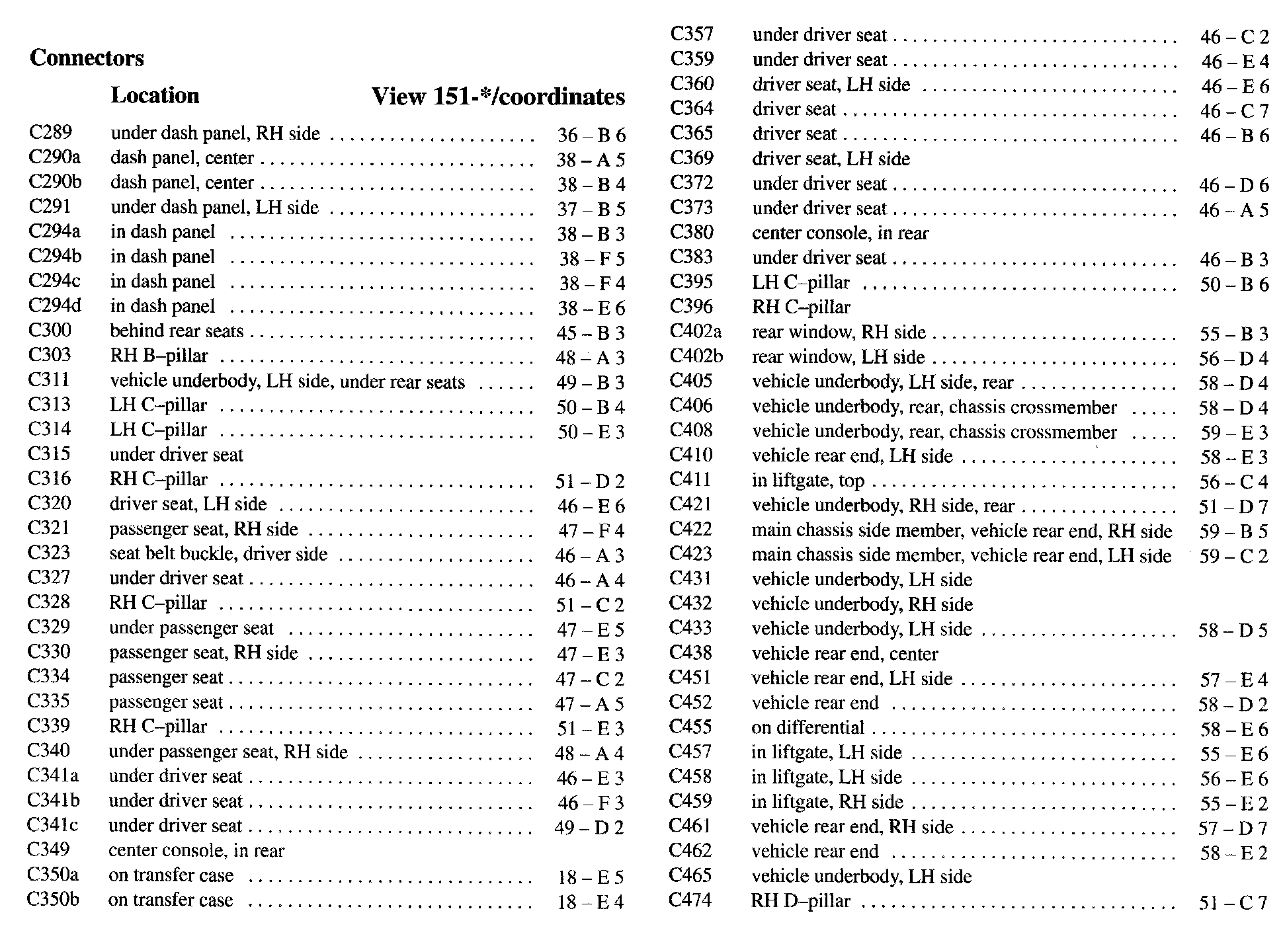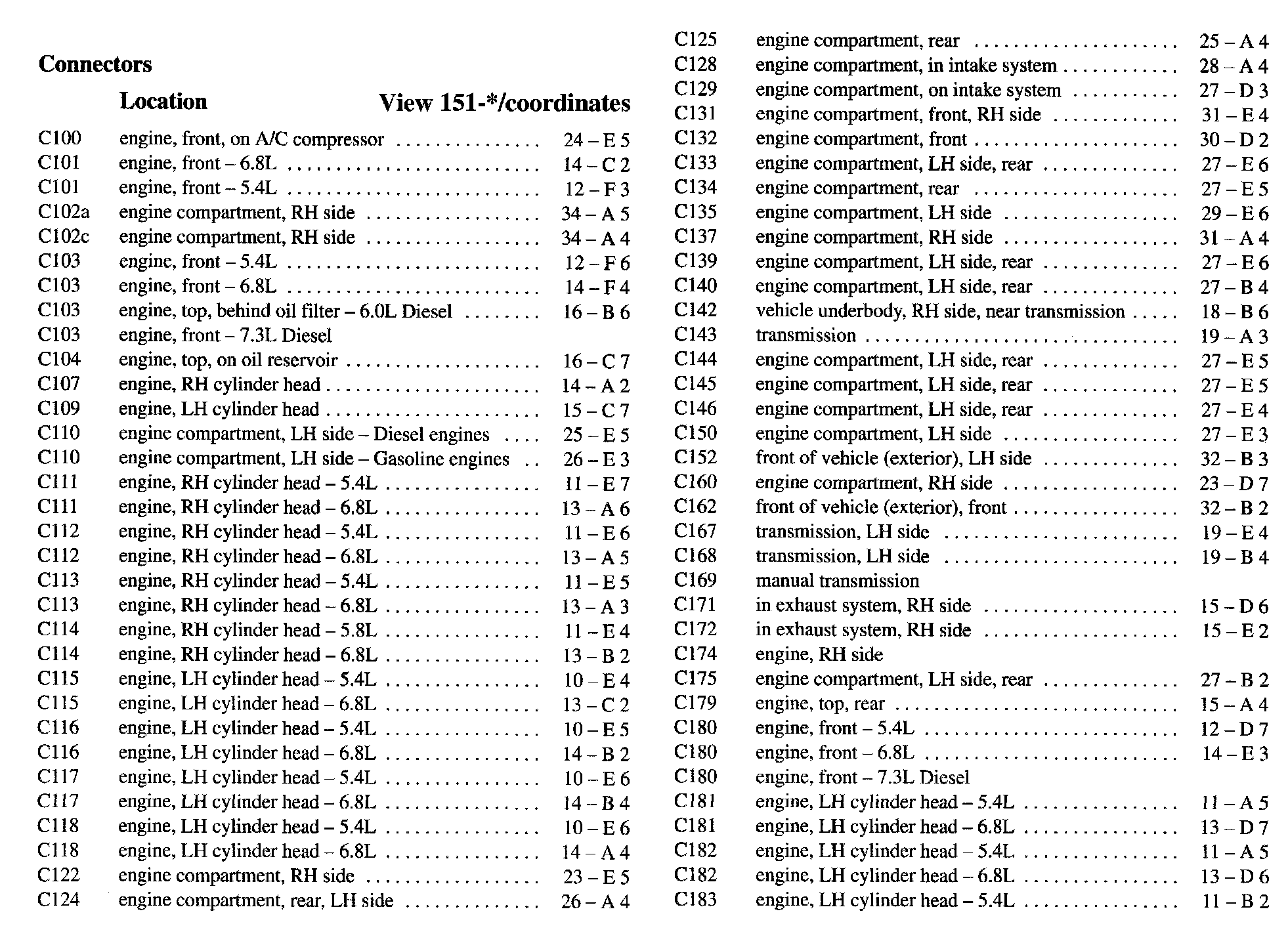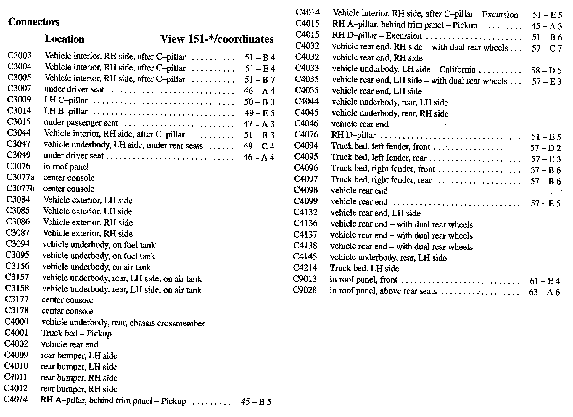 PLEASE NOTE: If a link on the Connector Location Index to a view is not provided, that means that the Connector and/or View in question does NOT apply to the vehicle model selected.