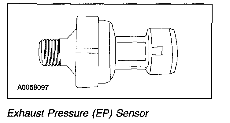 The Exhaust Pressure (EP) sensor is a variable capacitor sensor that is supplied a 5-volt reference signal by the PCM and returns a linear analog voltage signal that indicates pressure. The EP sensor measures the pressure in the LH exhaust manifold. The EP sensor signal is no longer used. The PCM utilizes the MAF and other temperature inputs to calculate exhaust pressure.