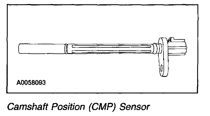 The Camshaft Position (CMP) sensor is a variable reluctance sensor, which will respond to a rotating trigger protruding from the camshaft. The trigger is a single 9.525 mm diameter peg approximately 18 camshaft degrees wide, projecting 3-5 mm from the camshaft. The sensor will produce a sine wave in response to the peg as it passes the sensor. The sensor output is required to determine camshaft position.