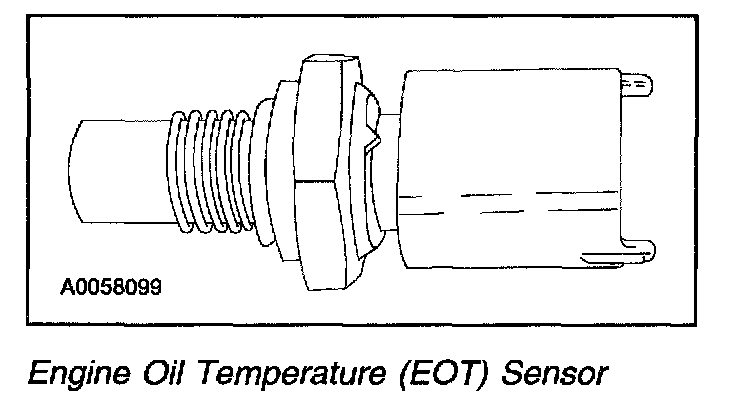The Engine Oil Temperature (EOT) sensor is a thermistor whose resistance decreases as engine oil temperature increases. The Engine Oil Temperature signal is used by the PCM to calculate fuel quantity, injection timing and glow plug operation.