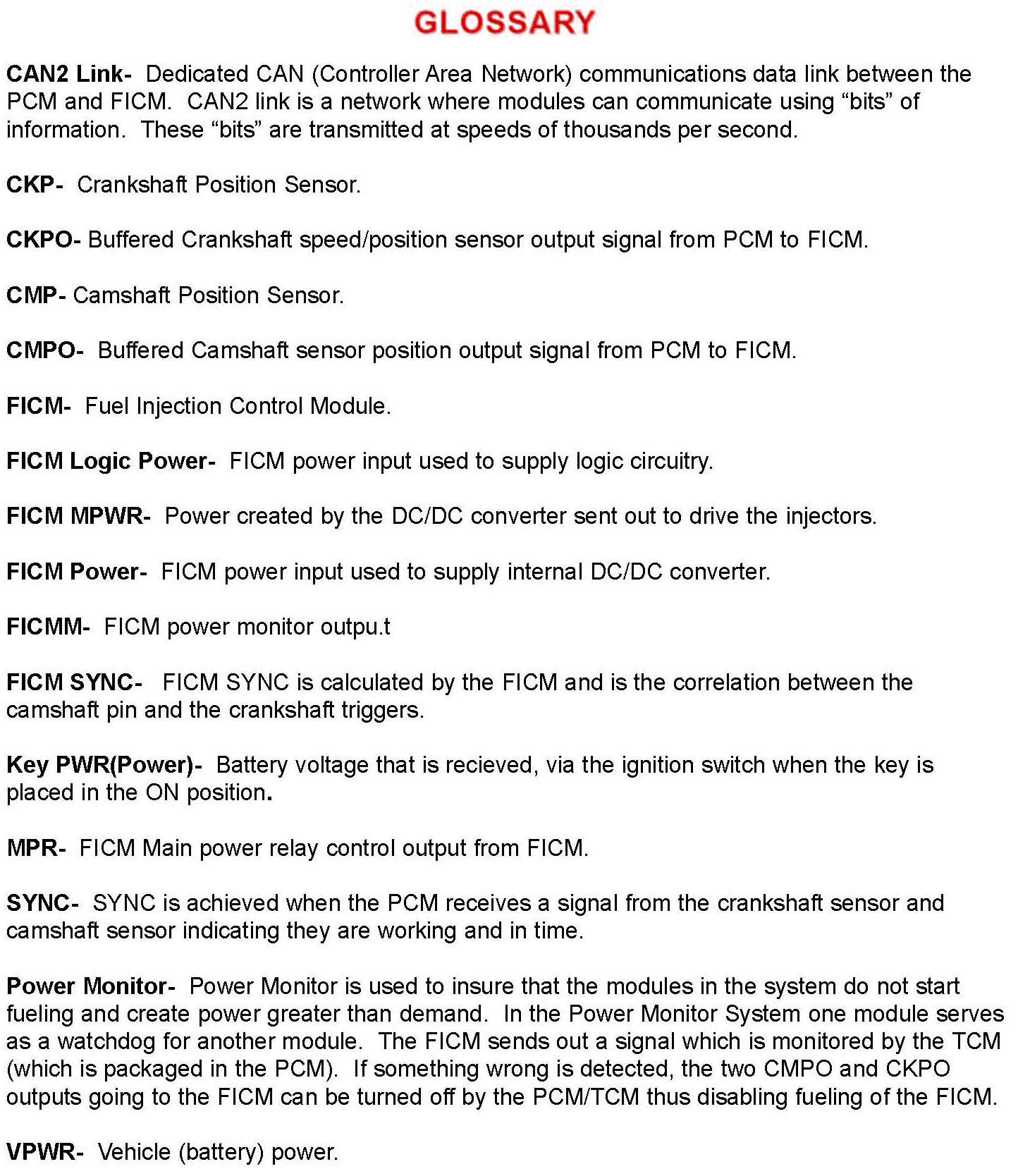 The FICM provides a feedback signal to the PCM indicating when the FICM is providing control signals to the injector (fueling) (via CAN2 link and *FICMM signal).