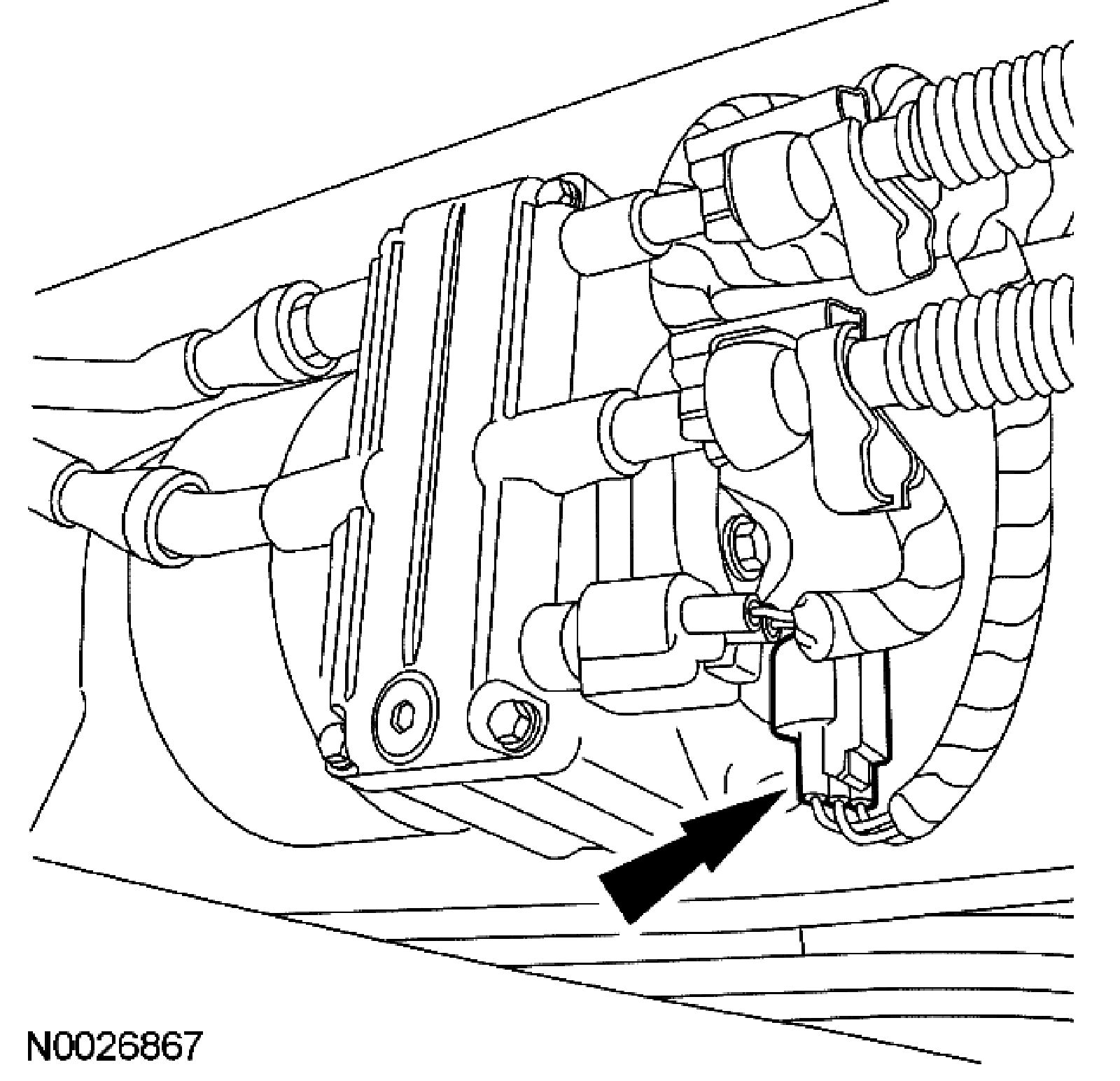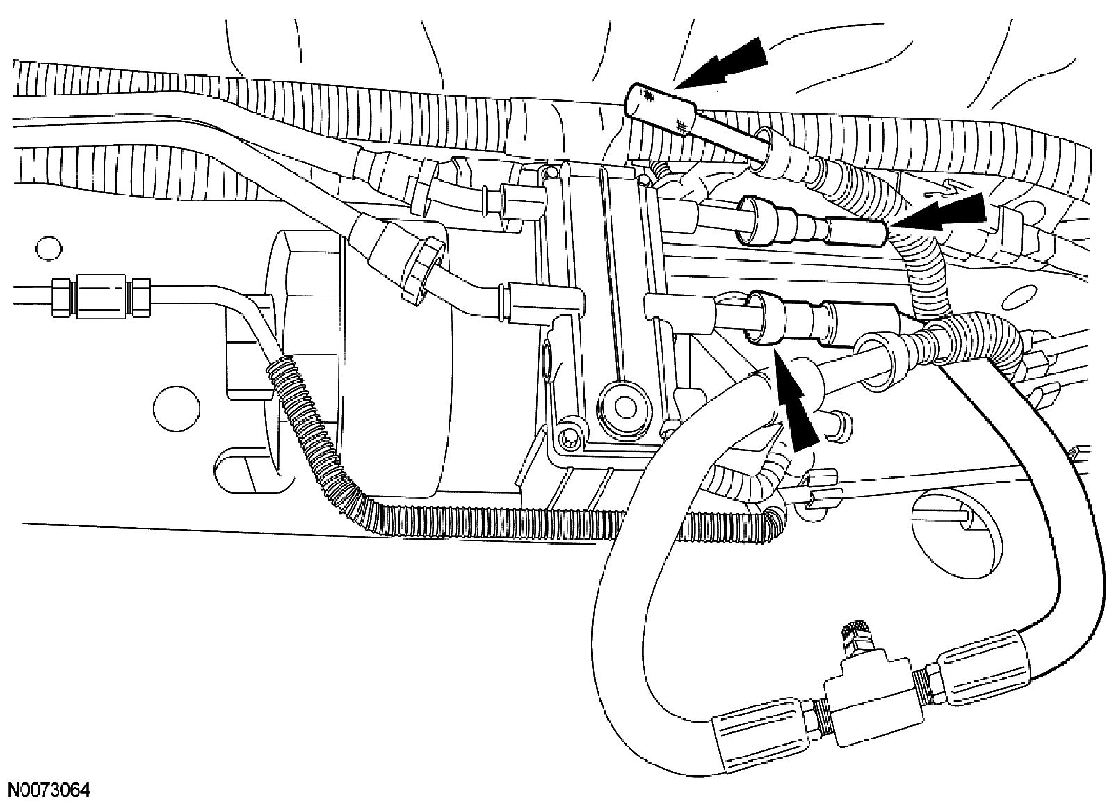 ^ NOTICE: Correct installation of the Diesel Fuel Flow Tester 310-193 or equivalent is necessary to prevent damage to the interior of the vehicle.