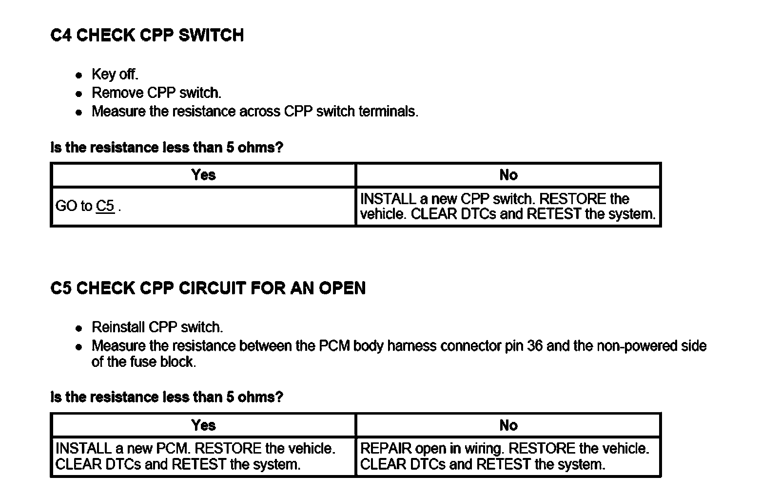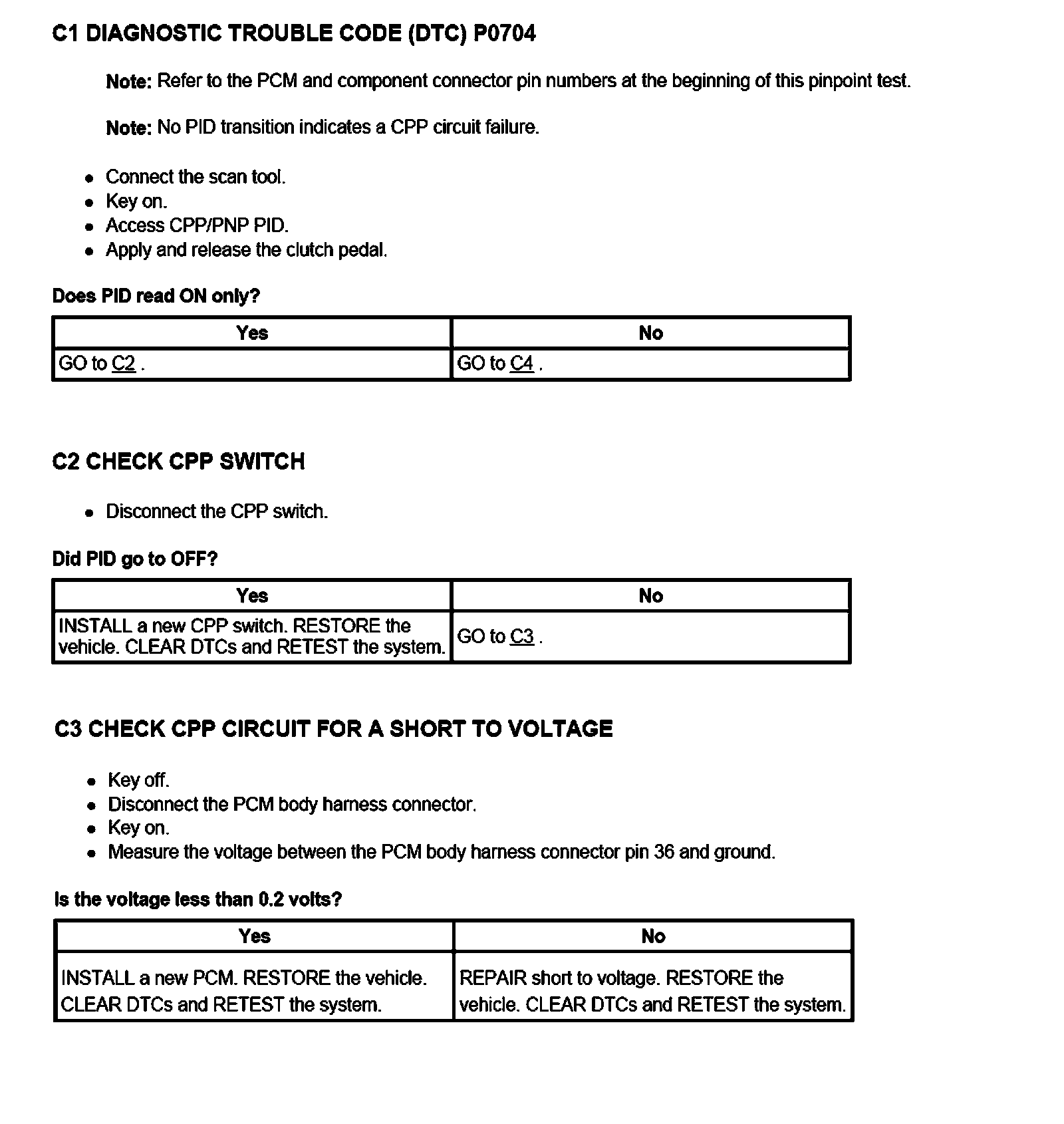 PINPOINT TEST C: CLUTCH PEDAL POSITION (CPP)/NEUTRAL START SWITCH