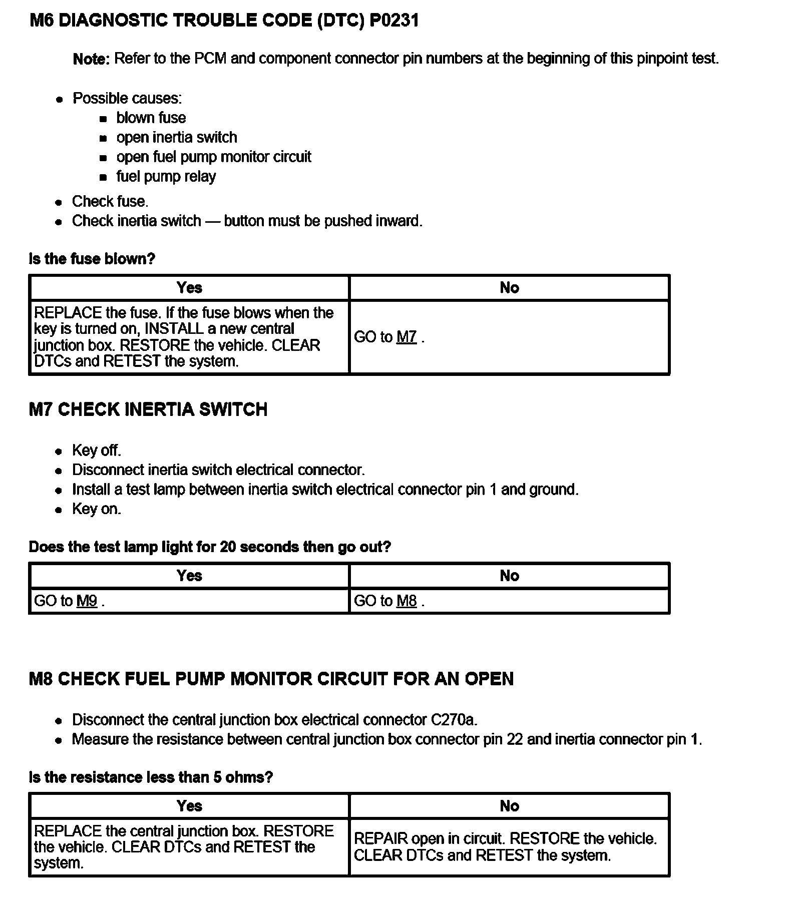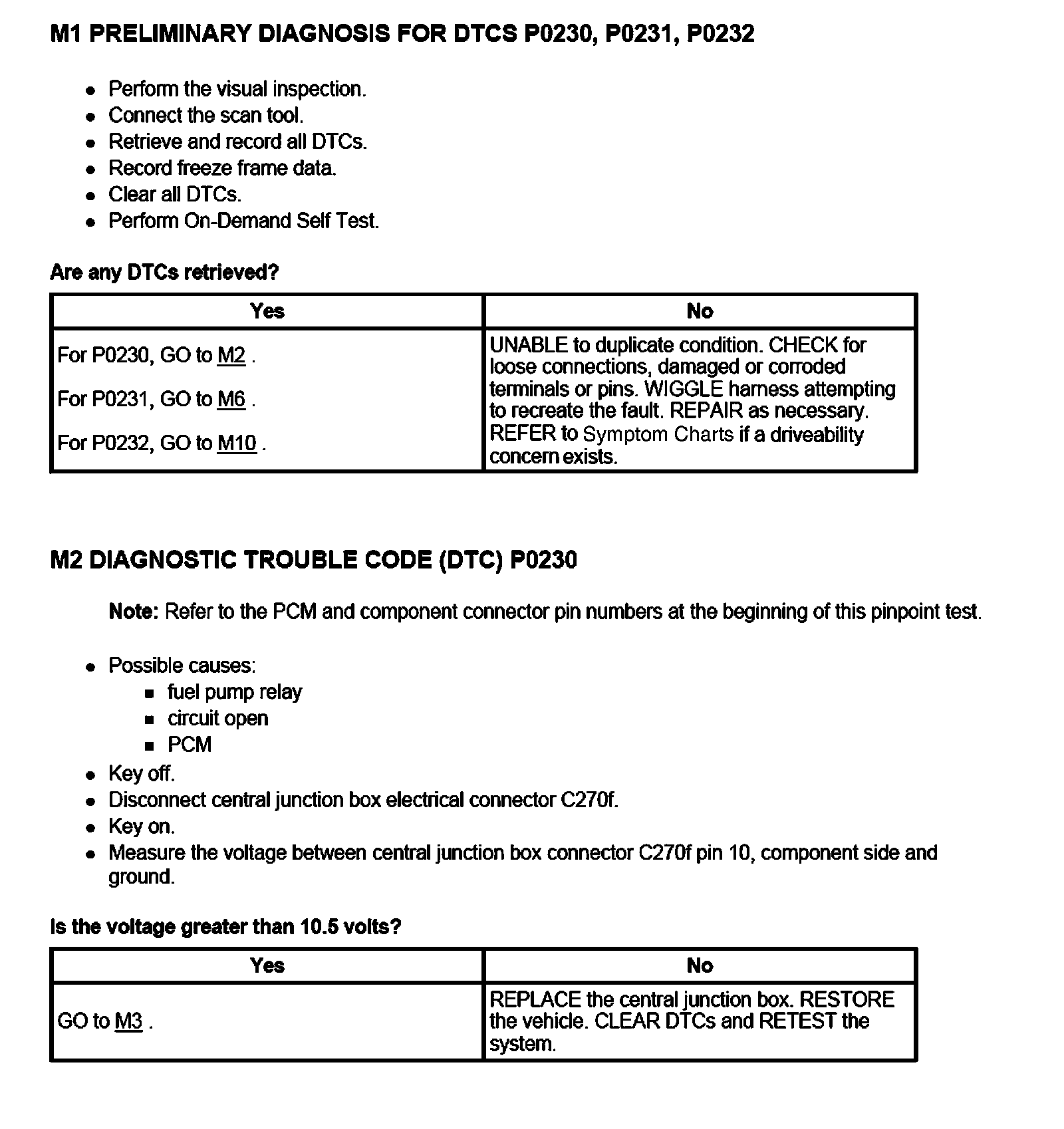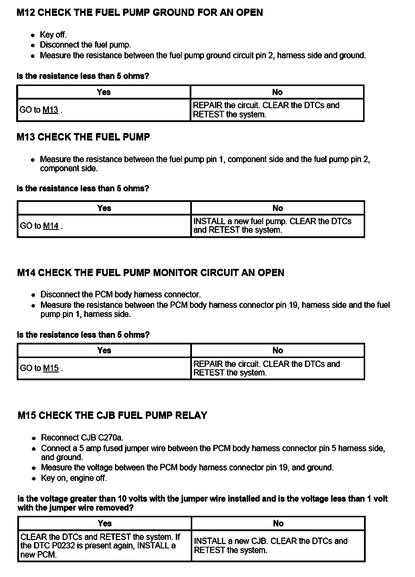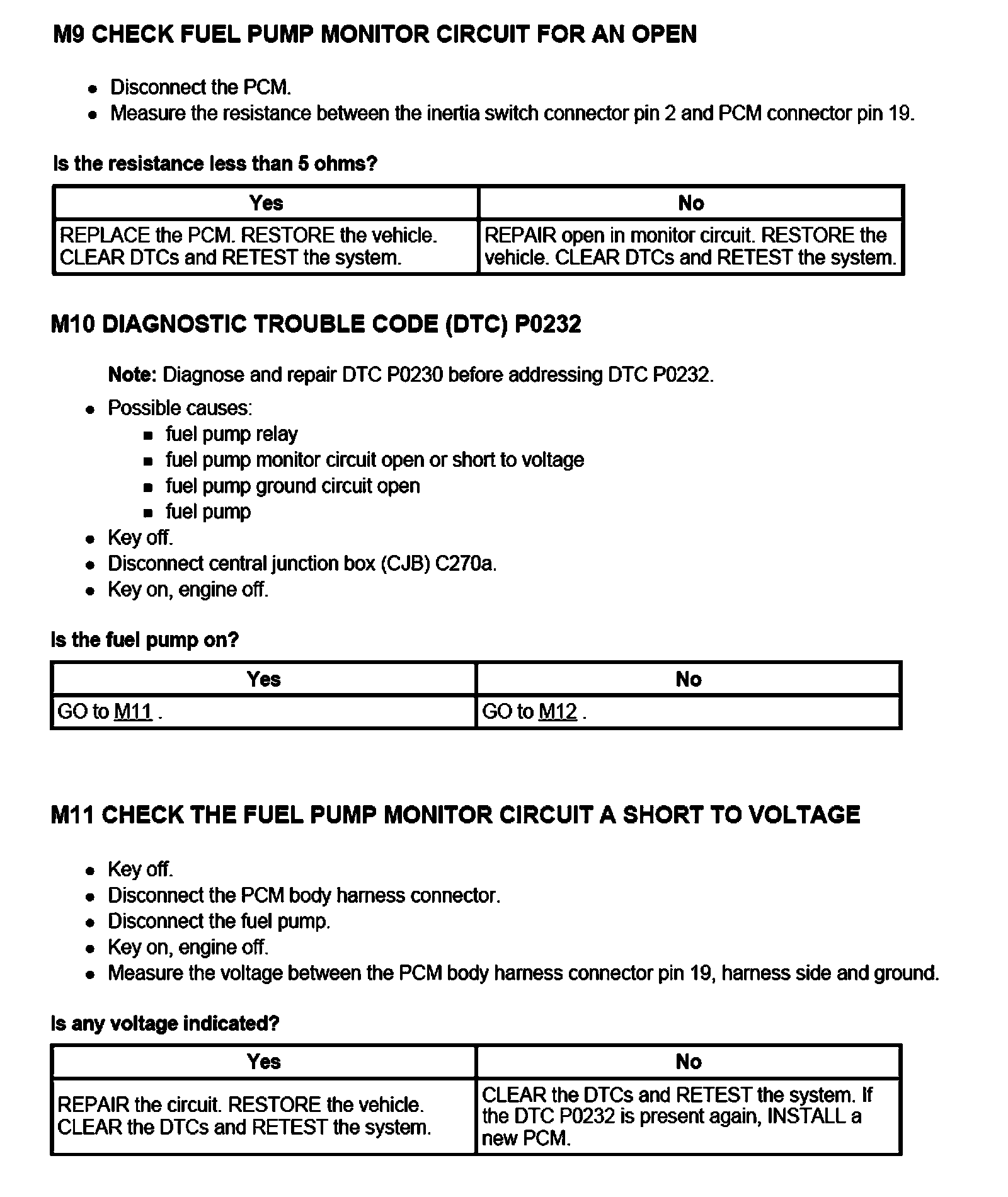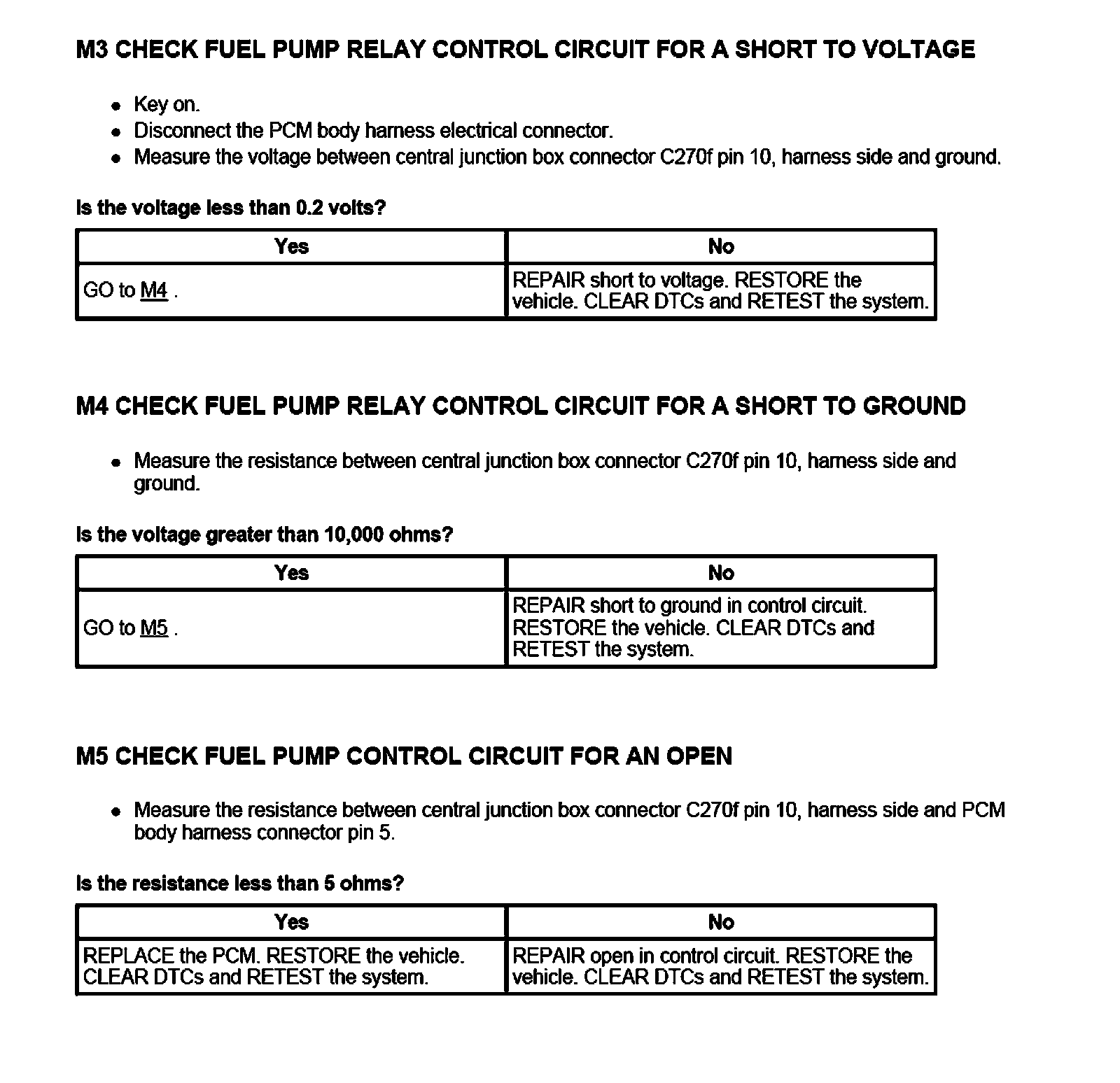 PINPOINT TEST M: FUEL PUMP MONITOR/CONTROL